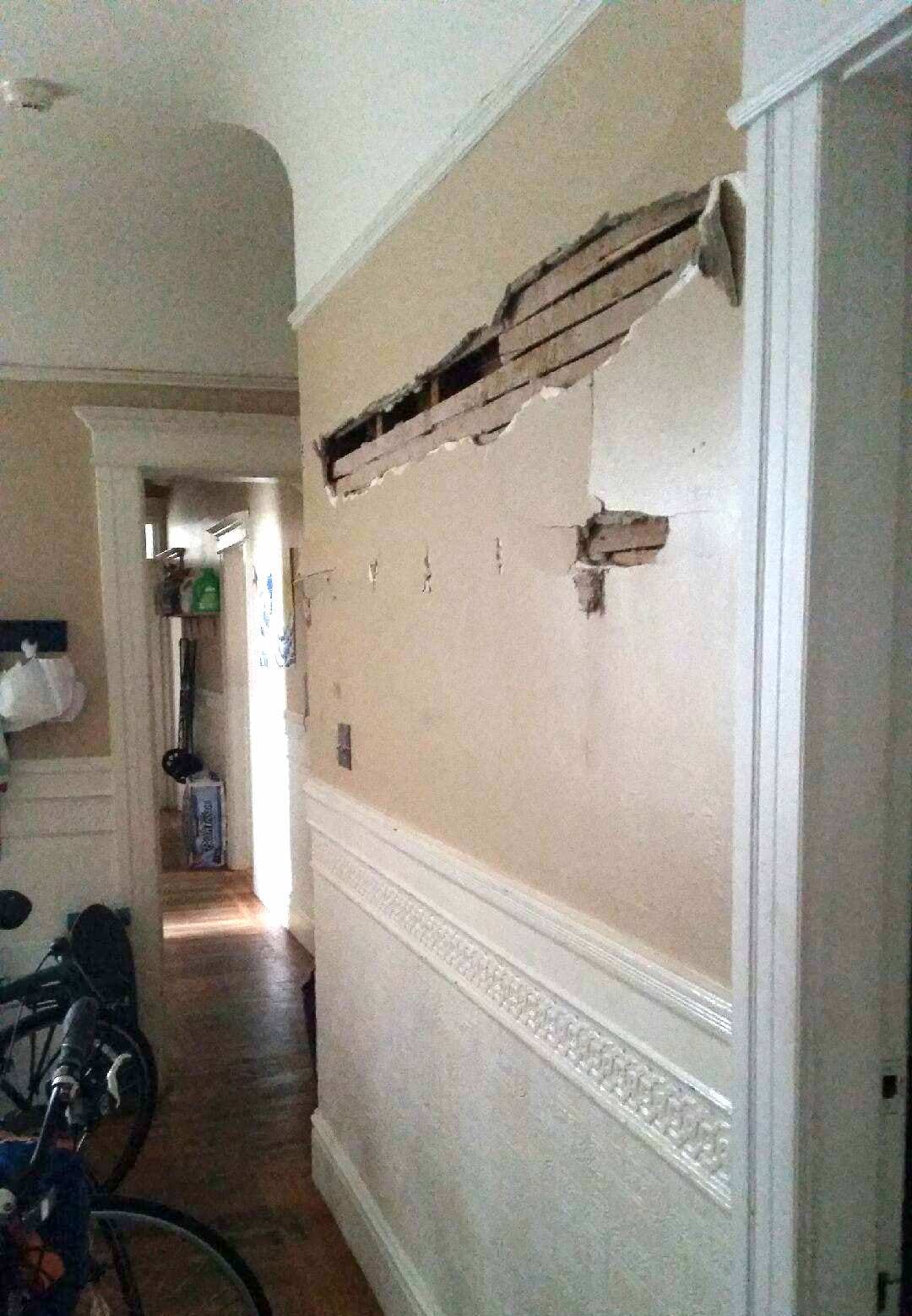 Your landlord tries to cover up black mold in the hallway by bleaching it.