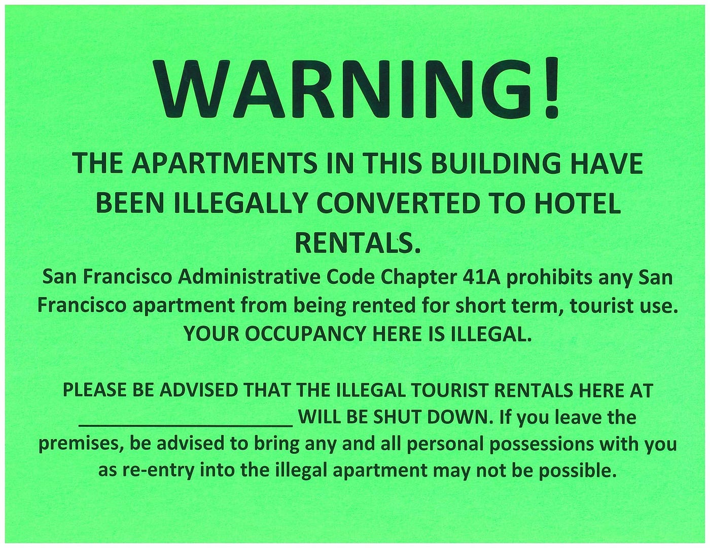 A sticker created by the SF Tenants Union to mark illegal vacation rentals