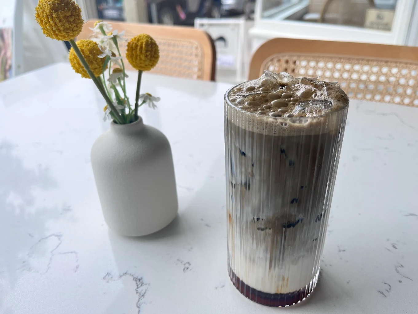 Momo Tea took over the old Third Culture Bakery space and turned it aggressively pink. The aesthetic is straight out of the Chinese premium tea wave that produced Chagee and Molly Tea: minimalist interiors, beautiful cup designs, whipped cream with pecans on top. Their menu splits evenly between leaf-based and fruit-based teas, and the floral options are the ones to get. The narcissus oolong and the gardenia milk tea taste like actual flowers without veering into perfume territory. They don't carry regular boba, only crystal boba and aloe, which will either delight or enrage you depending on your loyalties. Cash gets you 10 percent off.