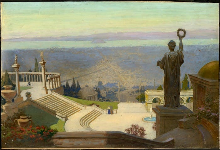 Burnham, born in New York in 1846, had already gained both fame and notoriety for his landscape designs within Washington DC, Cleveland, and Chicago when the Association for the Improvement and Adornment of San Francisco invited him to our city in 1904. This quasi-political association, formed that same year, had the happy goal of making San Francisco “a more agreeable place in which to live” and Burnham was going to help them do this.