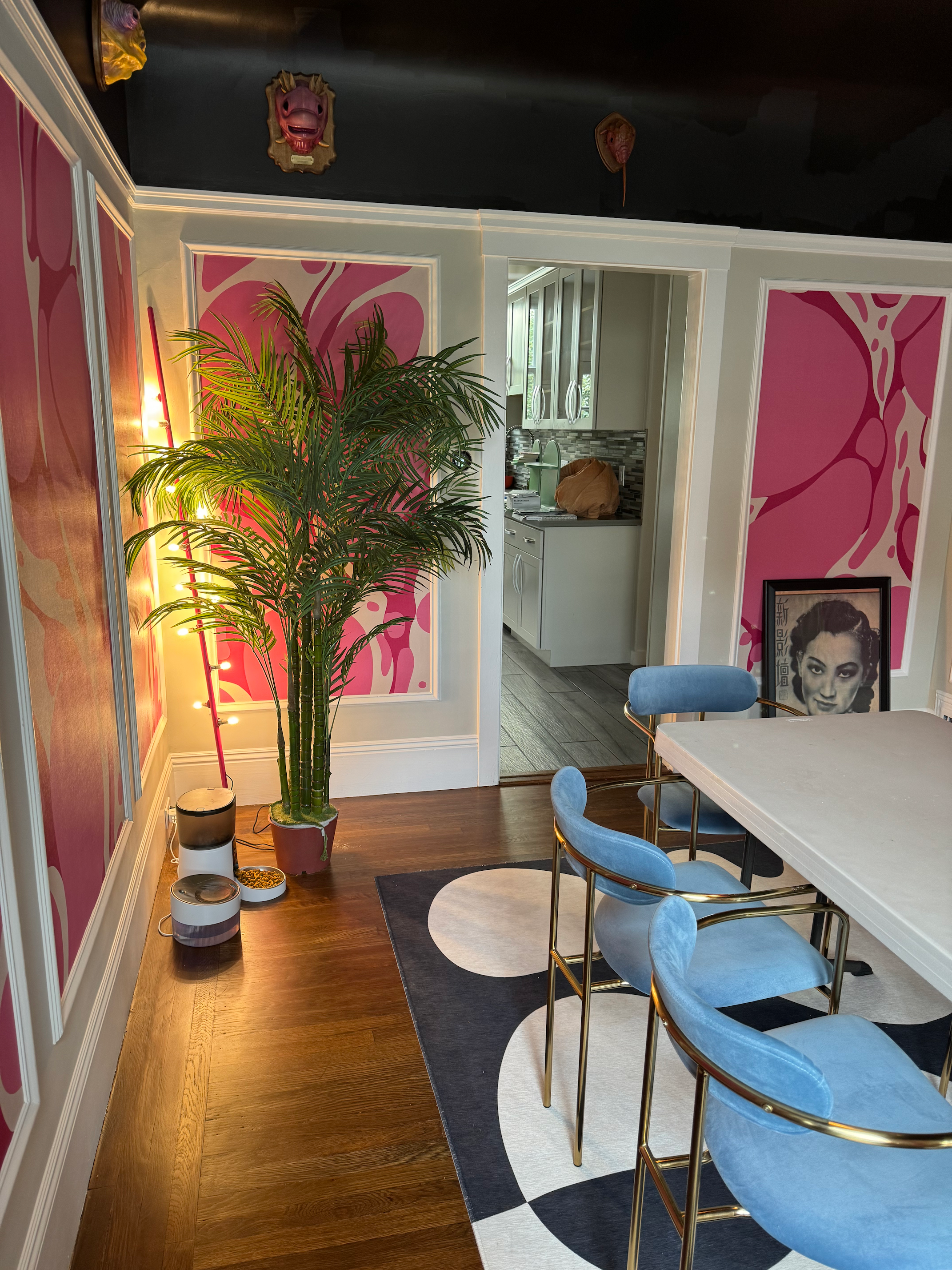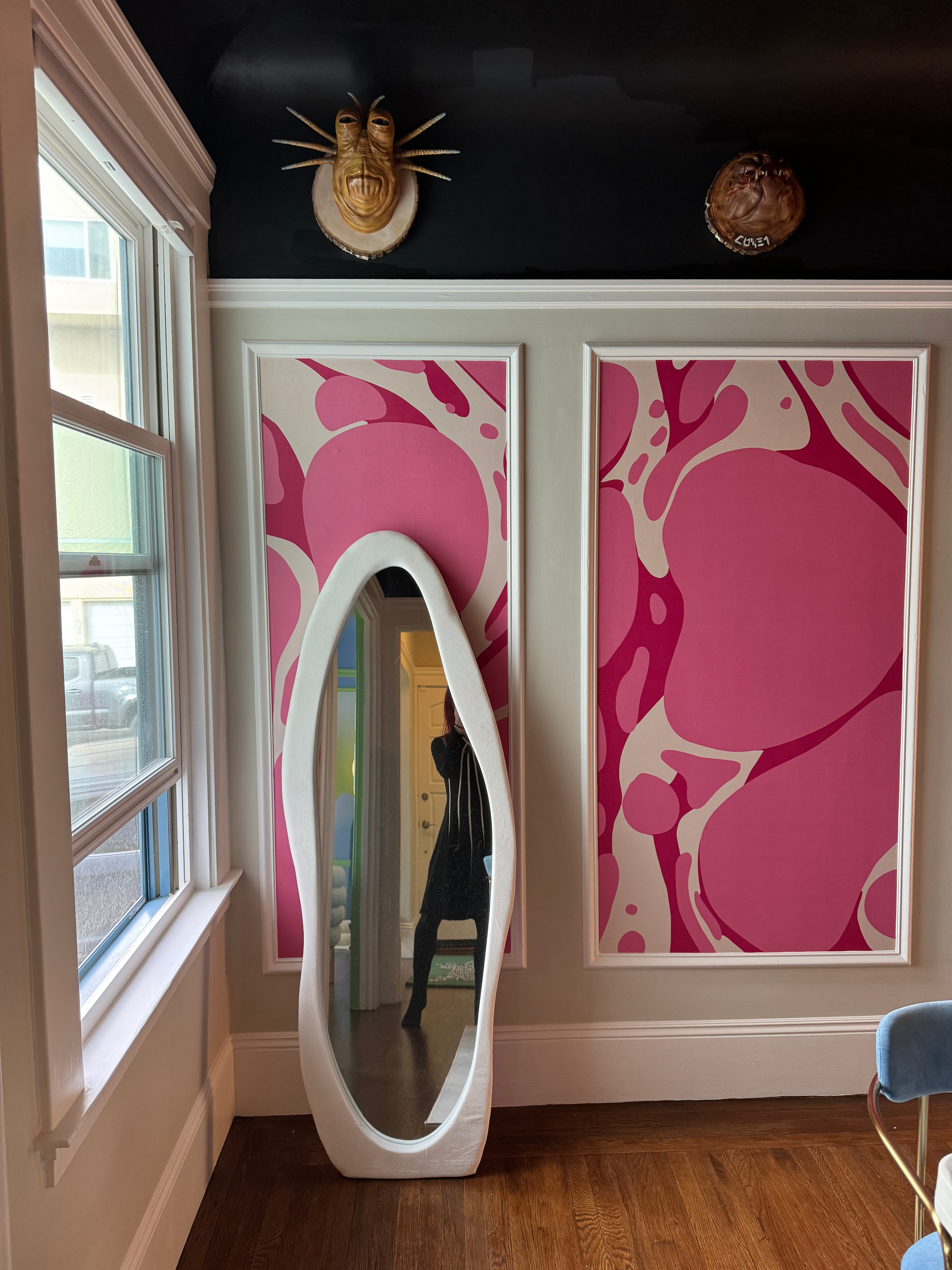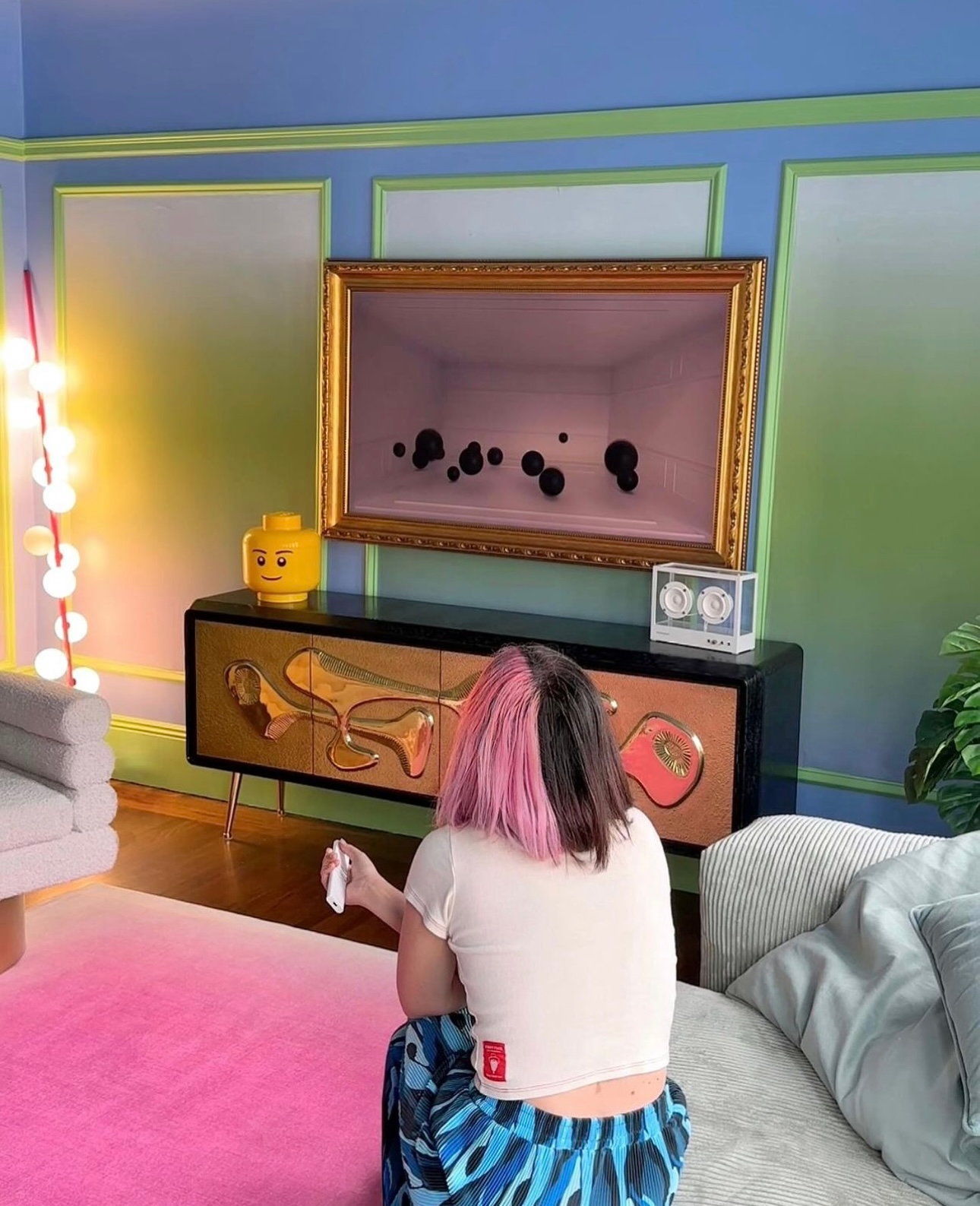 In January 2023, she lost her full-time job, a casualty of the big tech layoffs at the time. But rather than look for another job, she decided to lean into content creation. She parlayed her internet fame into a new career as an interior decorator, taking on projects for open-minded clients that give her free creative rein, doing brand partnerships, and creating her own wallpaper designs.