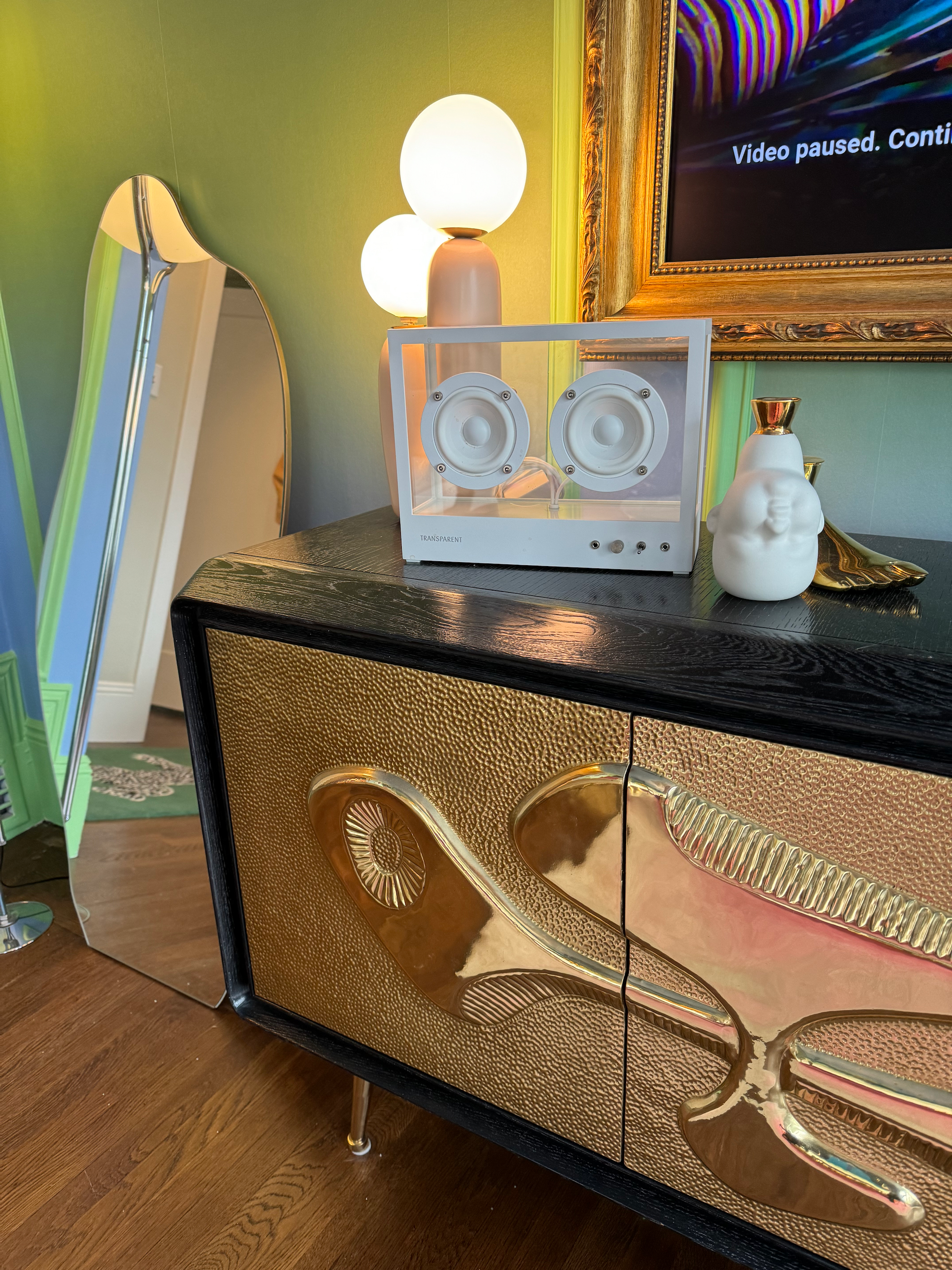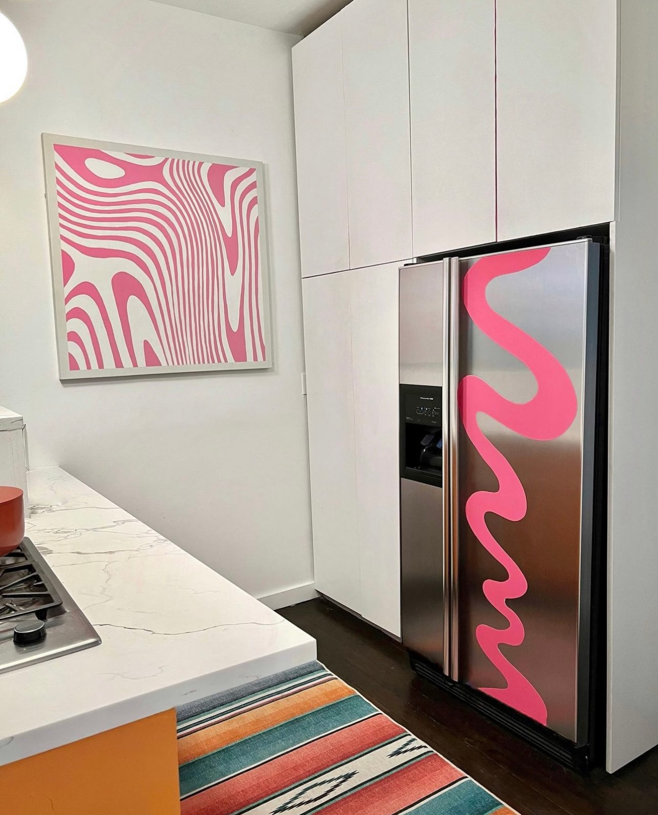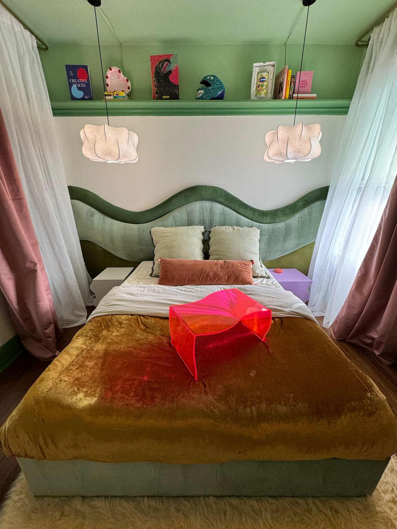 In January 2023, she lost her full-time job, a casualty of the big tech layoffs at the time. But rather than look for another job, she decided to lean into content creation. She parlayed her internet fame into a new career as an interior decorator, taking on projects for open-minded clients that give her free creative rein, doing brand partnerships, and creating her own wallpaper designs.