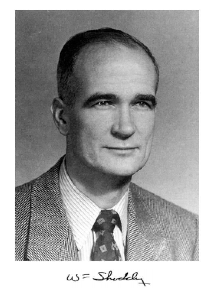 Born in London to American parents in 1910, William Bradford Shockley grew up in an 1889 Craftsman-style house at 959 Waverley Street in Palo Alto, just yards from the famed Hewlett-Packard garage. He was a precocious child, described as “ill-tempered, spoiled, almost uncontrollable, who made his doting parents’ lives miserable.” Shockley earned a bachelor’s degree at the California Institute of Technology and a PhD in theoretical physics from the Massachusetts Institute of Technology. At Bell Telephone Laboratories, he performed research in solid-state materials and served in a Naval Operations Research role during World War II.