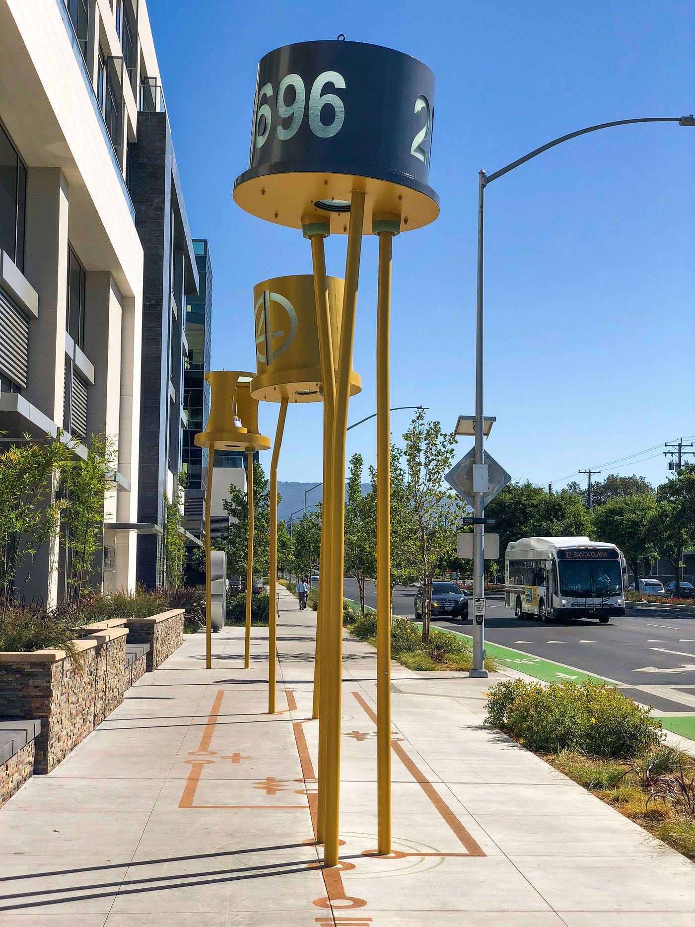 A new 391 San Antonio opened in August 2018. To commemorate its legacy, the developers incorporated three giant sculptures of semiconductor devices into the sidewalk and connected them into an oscillator circuit with “wires” painted on the sidewalk. An interpretive panel mounted on the wall includes a genealogy chart depicting the succession of companies that spun out of the lab, together with an IEEE Milestone plaque celebrating the site as the place that gave birth to silicon in Silicon Valley.