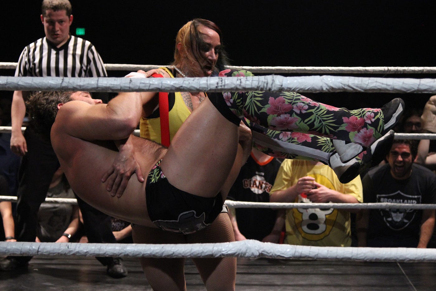 This encapsulates what I love about Hoodslam, which goes down on first Friday of each month at the Oakland Metro Operahouse in Jack London Square. It also exemplifies what makes Hoodslam so different from, say, WWE. In most pro-wrestling matches, you can expect minor, generally predictable shenanigans — a smack with a metal folding chair, a wrestler disguised as an audience member popping out at the last minute.