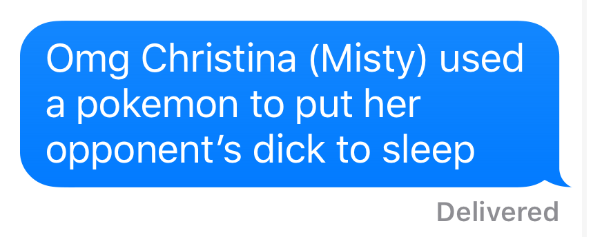 And now I’ve seen a wrestler use her Pokémon, Togepi, to put her opponent’s dick to sleep.
