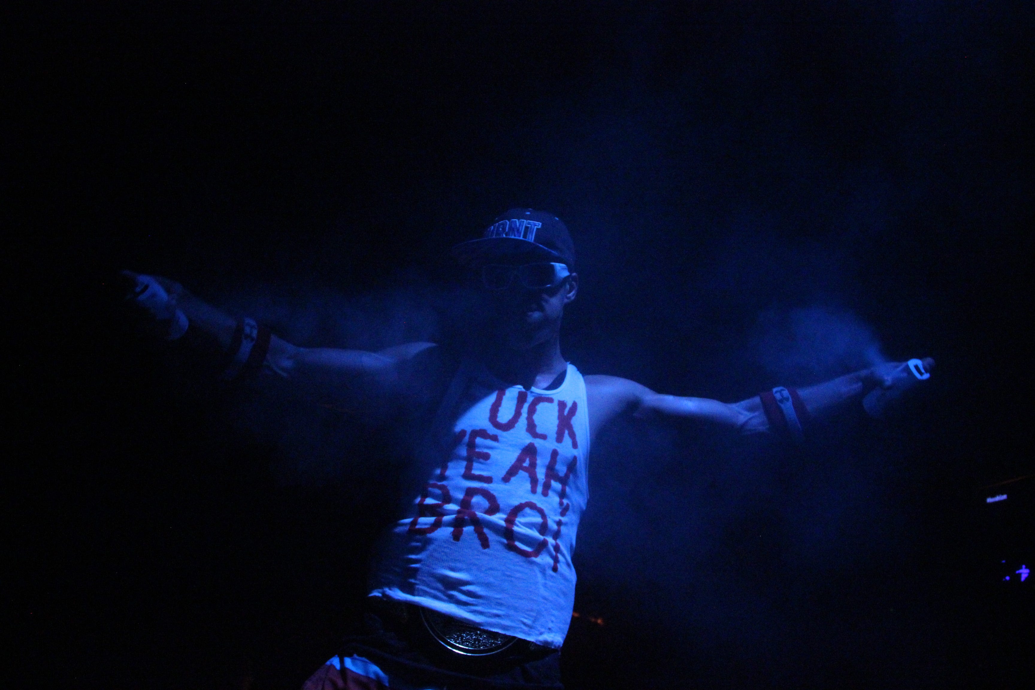 But that’s exactly the point of Kirsch’s character, Broseph: He’s a dick. Clad in a flat-brimmed ball cap (which used to say “DRUNKEN $WAG” and now says “TURNT”), board shorts, and dual cans of Axe cologne that he sprays wantonly, Broseph always makes his entrance to a Nickelback track.