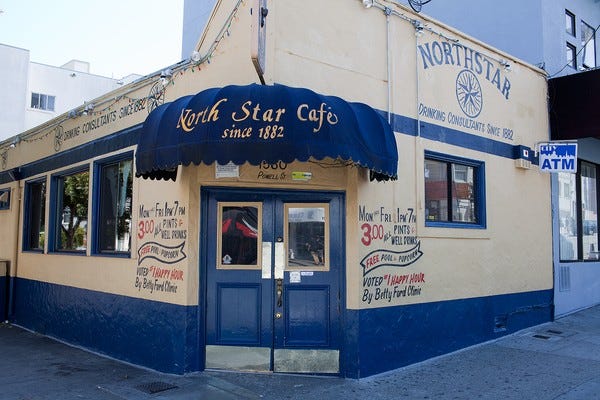 Northstar Cafe’s happy hour, which, they boast, was ranked #1 by the Betty Ford Clinic, runs Monday through Friday from 1:00 p.m. to 7:00 p.m. and features $3 beers and well drinks. Given the sky-high drink prices in San Francisco these days, this is certainly something to get happy about!