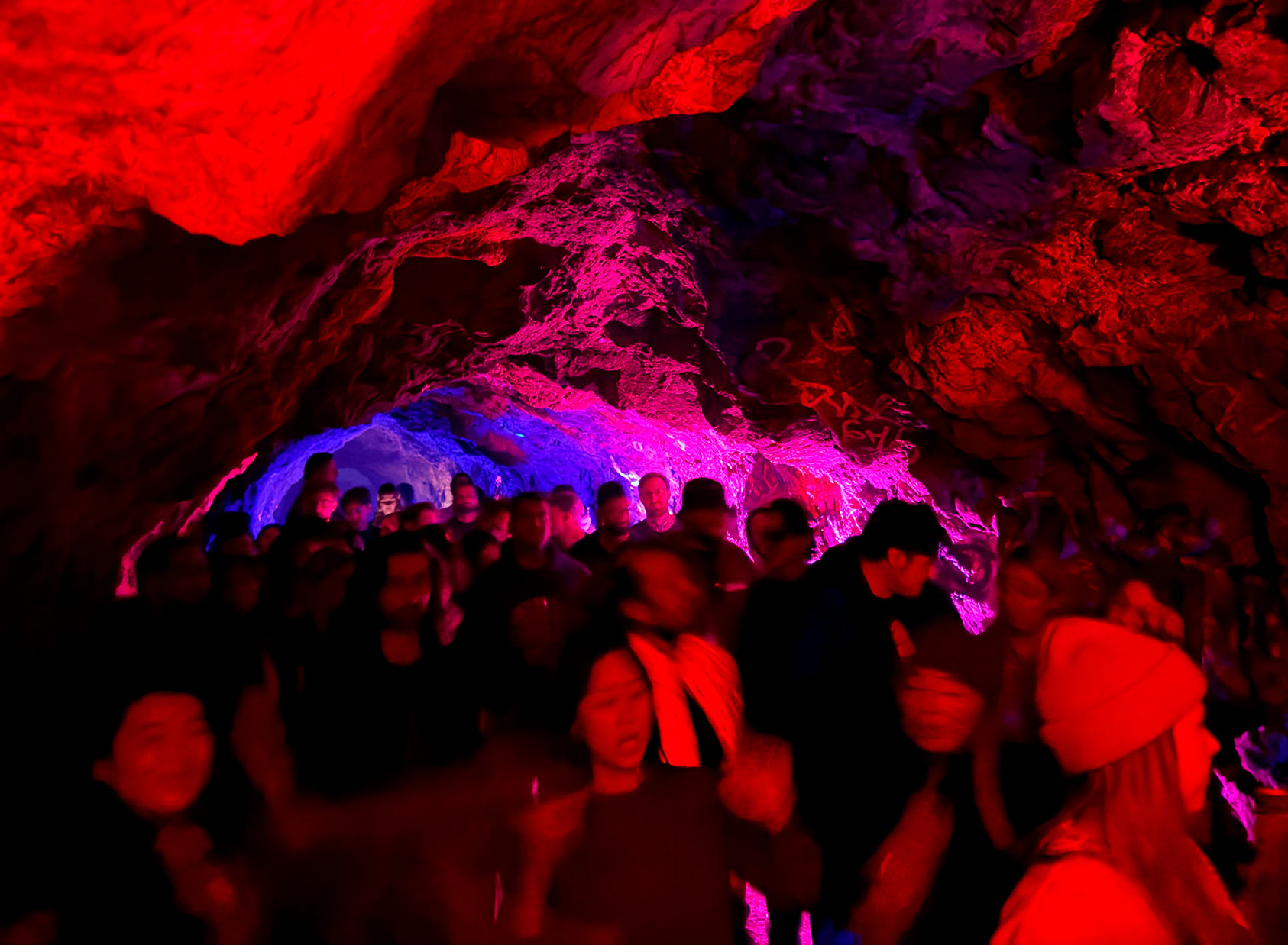 "There must be another cave nearby," my friend said. There wasn't. In fact, this was the same cave they partied in 2024. That the "secret location" was exactly the same — and yet, not disclosed until the day of the event — made me giggle a little bit.