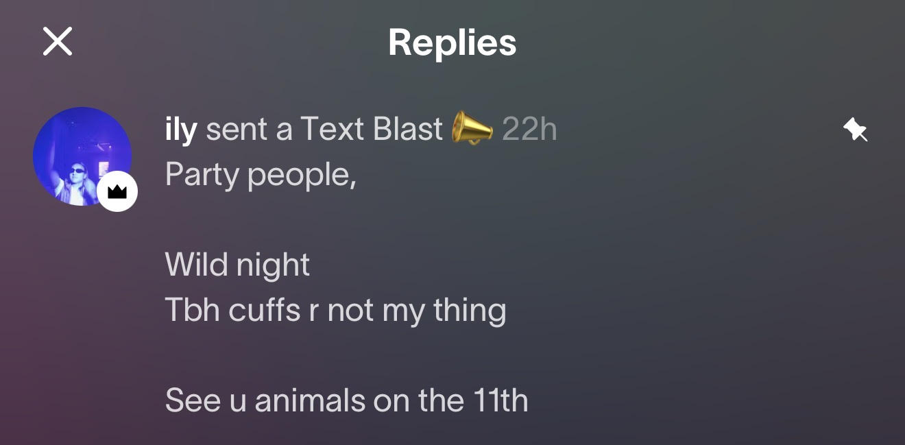We received a pair of updates via Partiful that suggested police enforcement did go down that night. It's worth noting that—on the night of the Cave Rave—we heard officers on bullhorns both at Lands End and Ocean Beach, enforcing the closure of parking lots and threatening to fine people present.