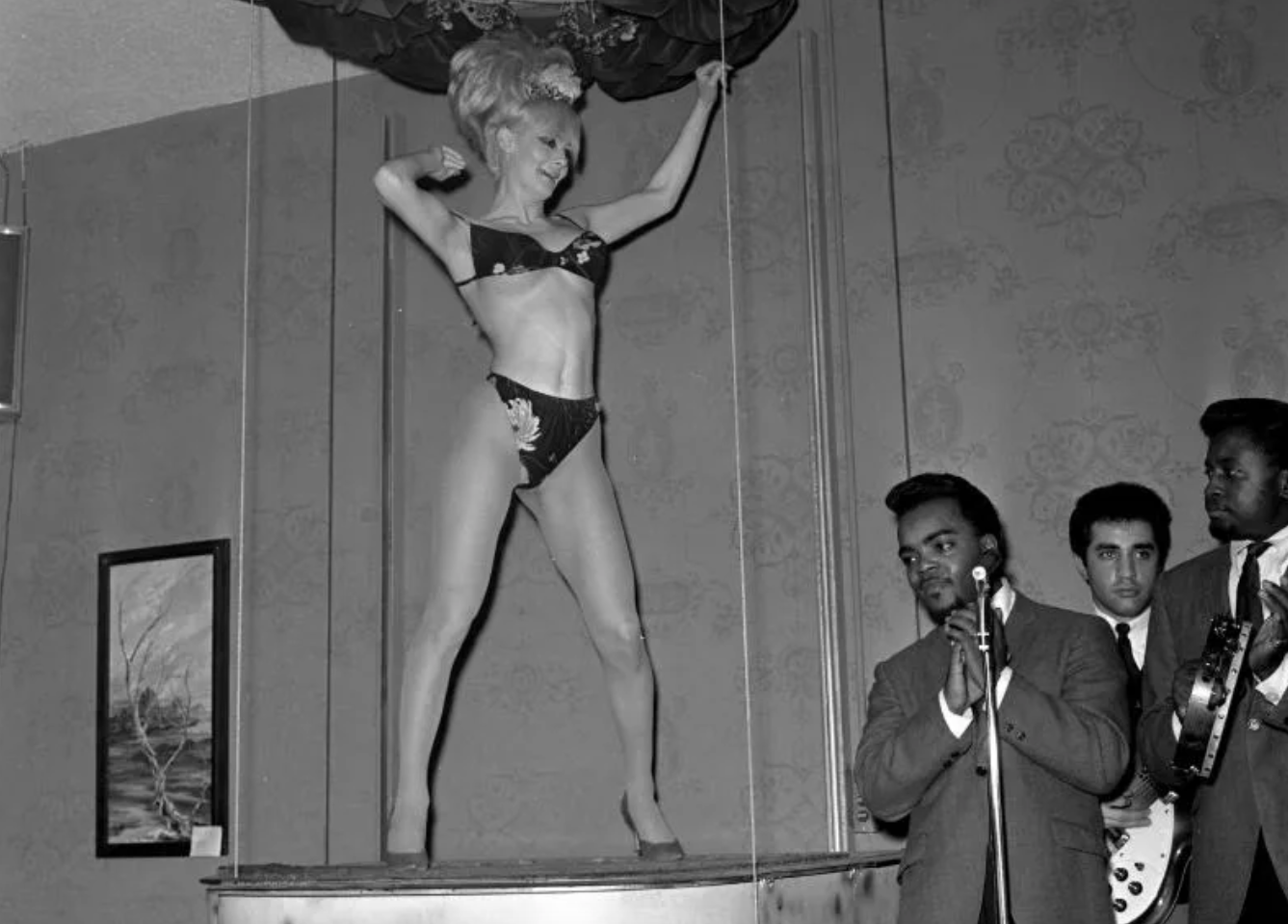 Gino Del Prete, one of the club owners, saw the makings of a marketing gimmick and decided to up the ante by rigging the piano to descend from the ceiling with a gyrating Doda on top. After fashion designer Rudi Gernreich came out with the monokini, Doda’s publicist, Davey Rosenberg, saw an even better opportunity to garner headlines. Soon, the tits out craze took San Francisco by storm, culminating in offbeat shit like a topless clam chowder joint, before the moral backlash took hold. Clubs were shut down and women were arrested, although a trial eventually acquitted them and made SF the first city to legalize topless dancing.
