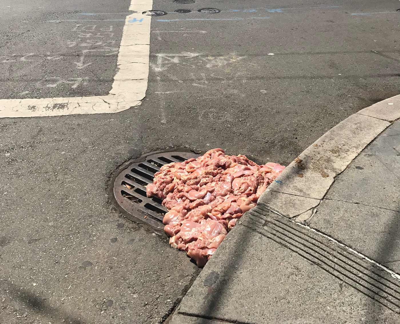 One of our writers nearly stepped into a pile of raw chicken spilling out of a street gutter, while walking in San Francisco on a casual summer six years ago. The sight was so weird that Lindsay Pugh assumed she imagined it — until she found the photo still on her phone.