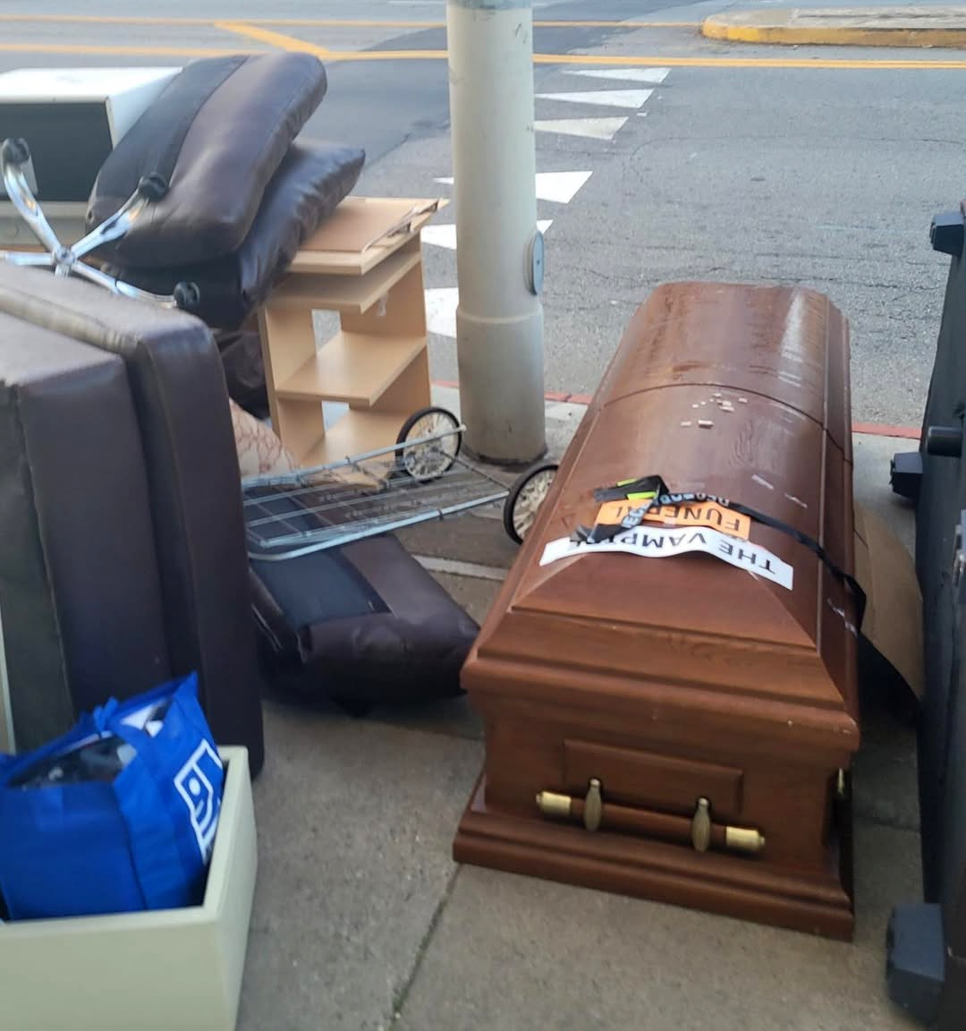 I mean, from the image it says “The Vampire Funeral” in a cheap printout, and this all was spotted a smidge after the holiday season, near pandemic times. Maybe someone just took “six feet apart” to a really morbid place.
