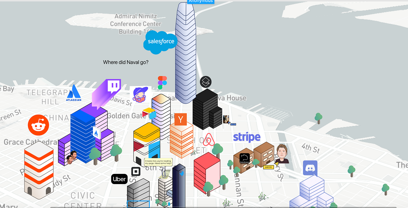 The map is chock-full of inside jokes; climbing gyms have been reopened, and near Twitter’s HQ, a location marker denotes a “(probably)secret tunnel for Jack Dorsey to travel between meetings.” The experience isn’t perfect — it’s rough and hacky, but the in-jokes, willingness to evolve, and bootstrapped spirit captures Silicon Valley as its best self.