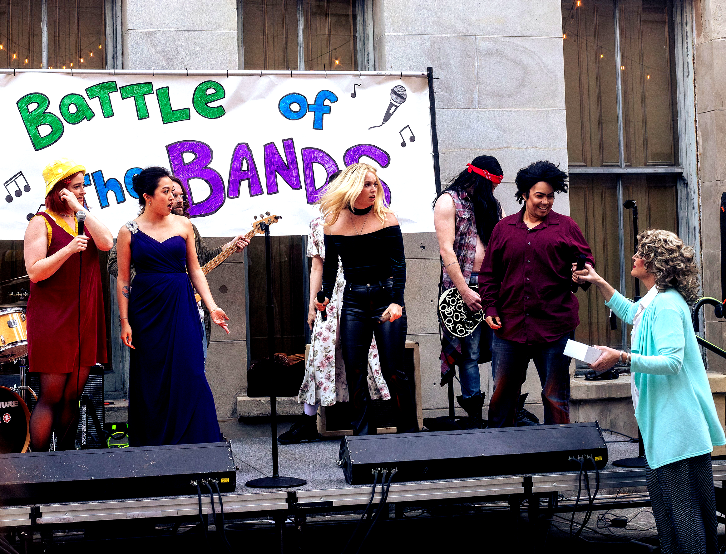 Speaking of what to wear, dressing in prom attire is encouraged for attendees — and certainly helps sell the immersive vibe of the show — but isn’t necessary. For those not decked out in tuxedos or dresses, there’s a funny plot convenience that explains how prom just so happens to be the same night as Battle of the Bands and a PTA meeting. Therefore, those not dressed up can still fit right in.