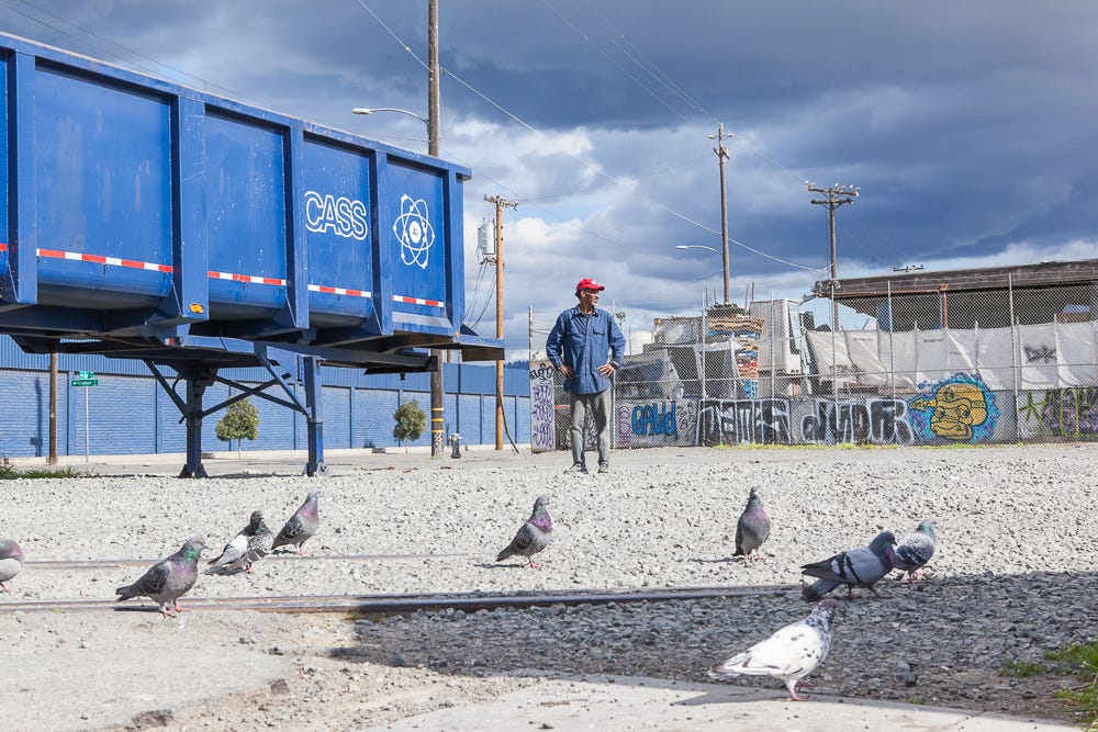 A few pigeons milled about on the sidewalk where Paul was working. He said the birds know him, just like the rest of the neighborhood does. “They recognize me,” he said. “I could ride my bike right to the corner and stop, and birds will fly down from everywhere and come to it.” He took a break to coax them near. That day there were maybe a dozen, but he explained that on Sunday there’s inevitably a flock around him.