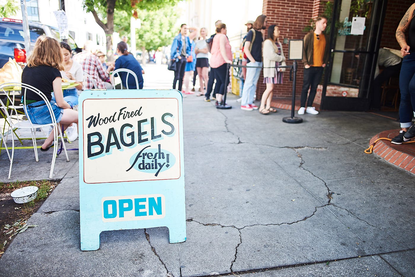 I left the restaurant at 5 a.m. holding a bag of my fresh-out-of-the-oven bagels with an idea in my head. It was still so early that the glowing fire remained one of the only sources of light in the neighborhood. It will be hours before Blake is done baking, but in just two hours, when the Temescal location opens at 7 a.m., hordes of guests will line up for breakfast.