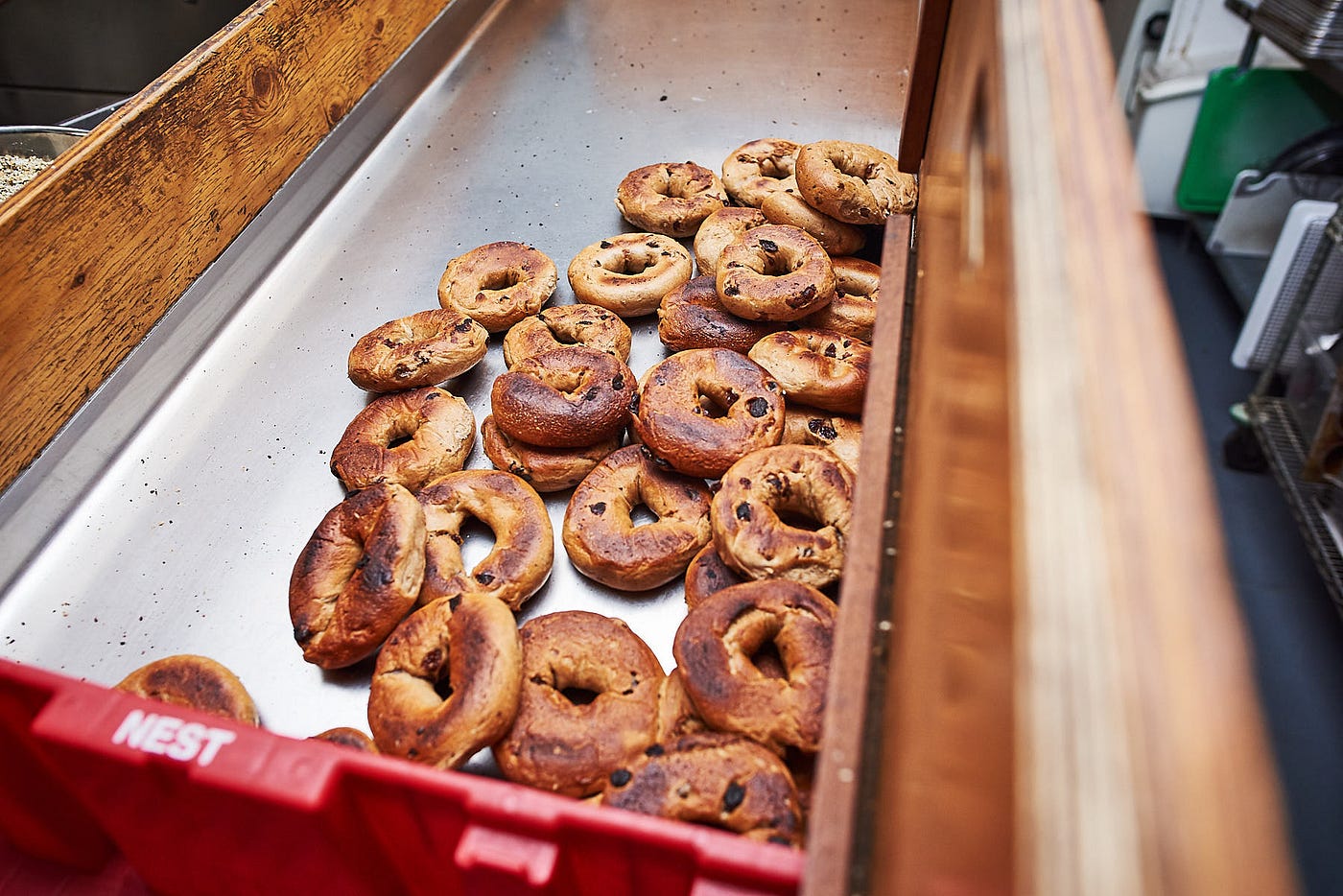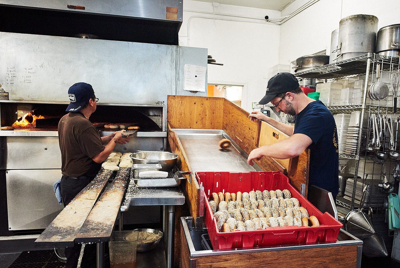 My alarm went off absurdly early this morning — at 3 a.m., to be exact. By the time I arrived at Beauty’s Bagel Shop in Temescal, Oakland, the kitchen’s wood-fire oven was roaring, making the 2,400-square-foot restaurant feel cozy, with just three of us in the room. Already, a set of bagels was toasting under the fire.