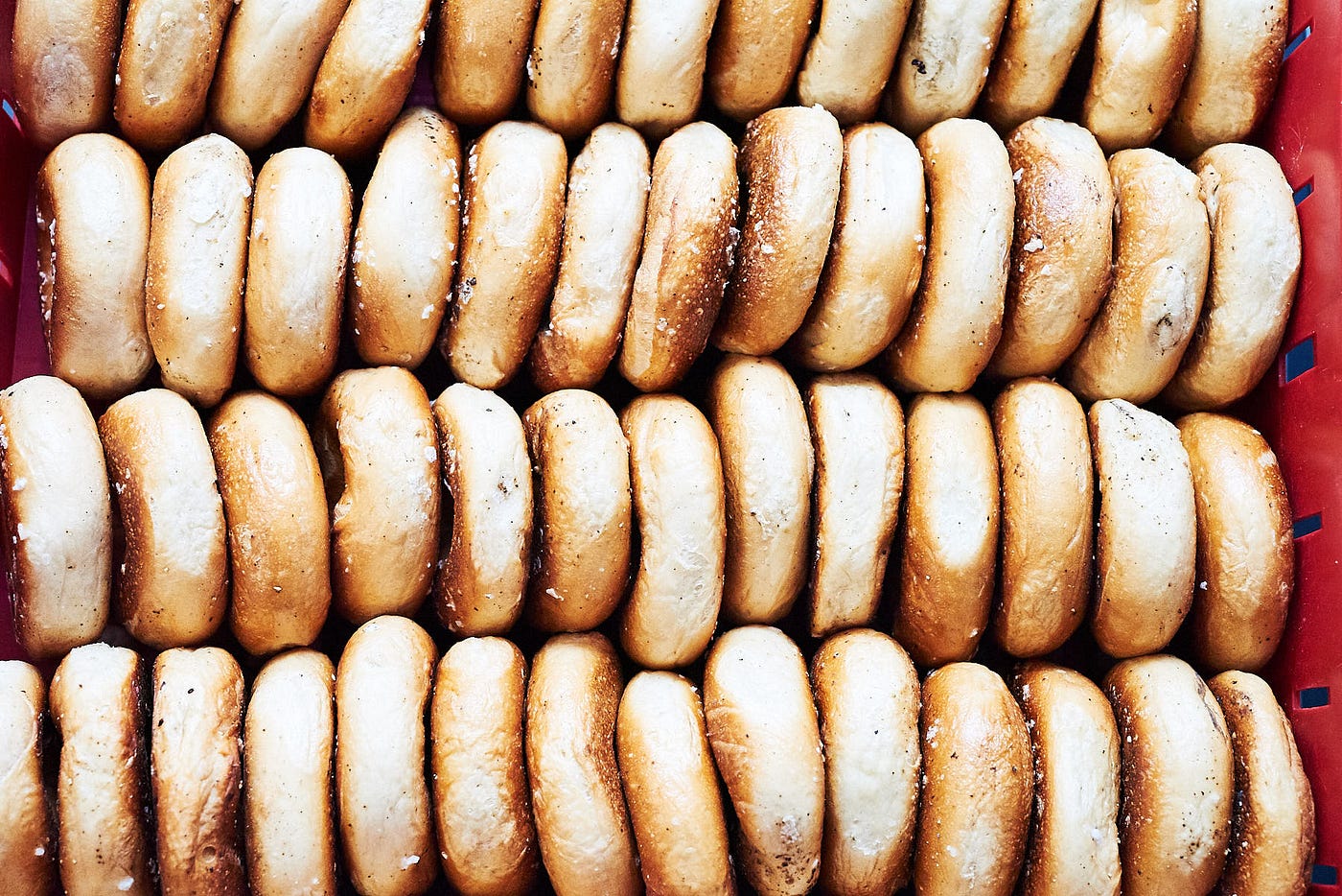 Although Beauty’s bagels are baked in a very similar way to how they’re baked in Montreal, Beauty’s difference is in the New York City–inspired dough. Montreal-style dough doesn’t contain salt, but as Blake says laughingly, “We do because it’s delicious.” So while the team boils the bagels in honey water, seeds them, and bakes them in a wood-fire oven like they do in Montreal, the team mixes and shapes the dough, then lets it retard overnight to add more flavor and structure.