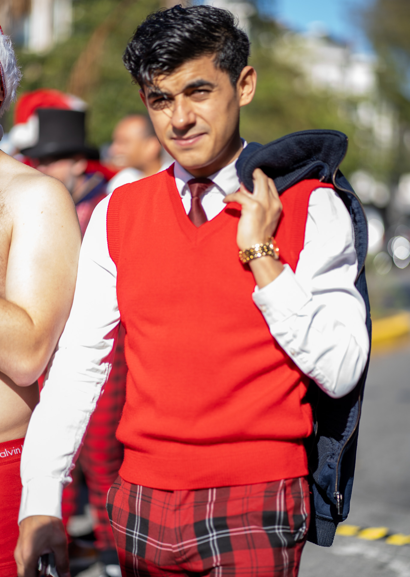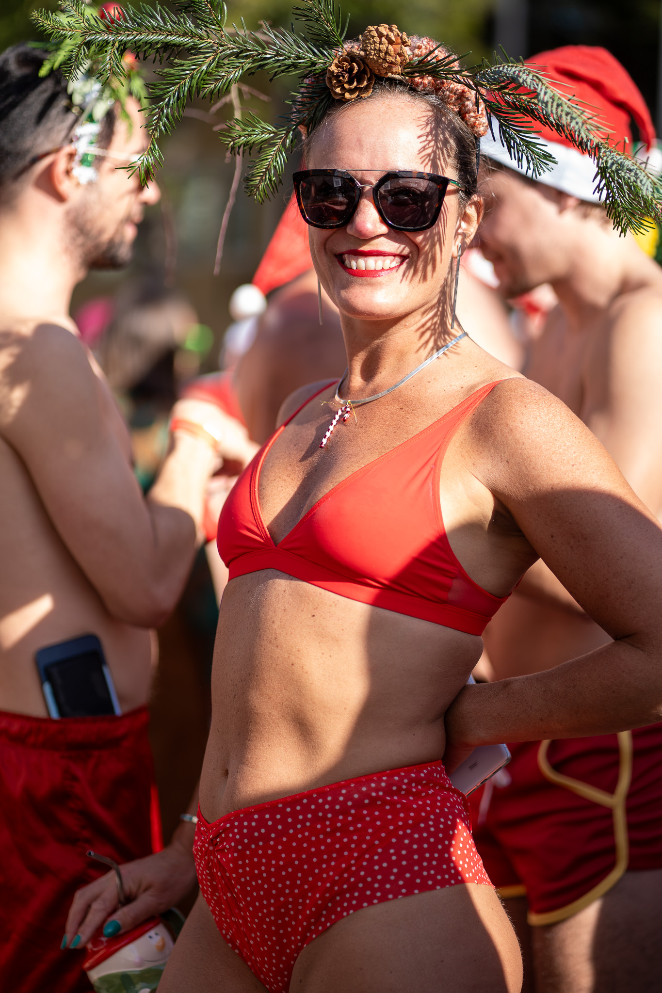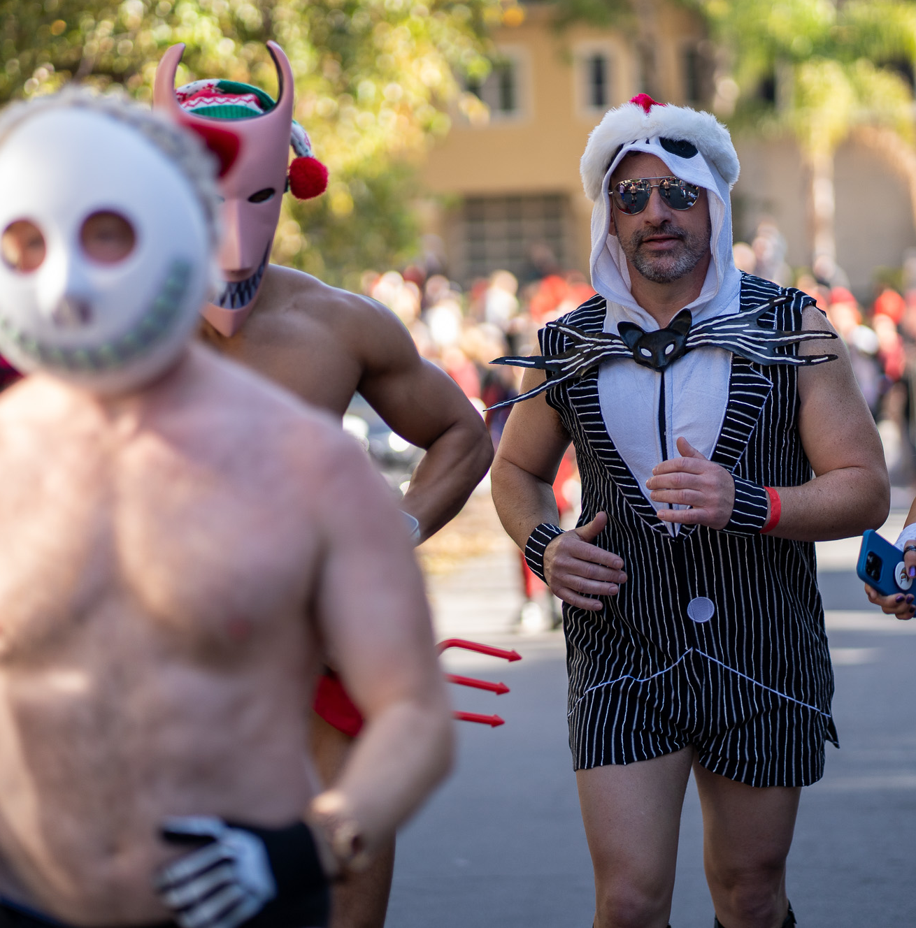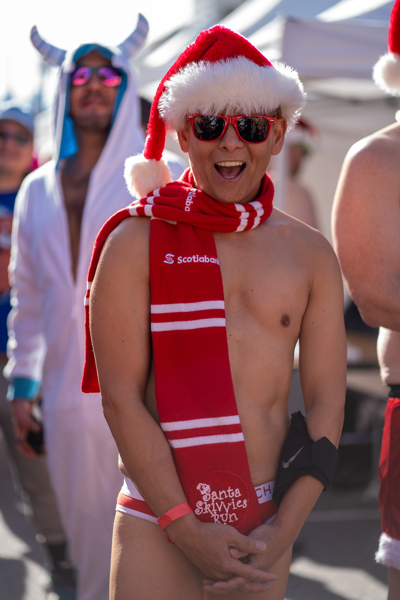 Santa Skivvies means something different for everyone. Juan Ramon has been volunteering in Castro for quite awhile, for instance, marking the 7th year he joined on Sunday. He definitively won the most decked out award, donning a full-coverage outfit with false abs, a Santa cape, and festive homemade green slippers — I assume left over from last year’s Grinch outfit.