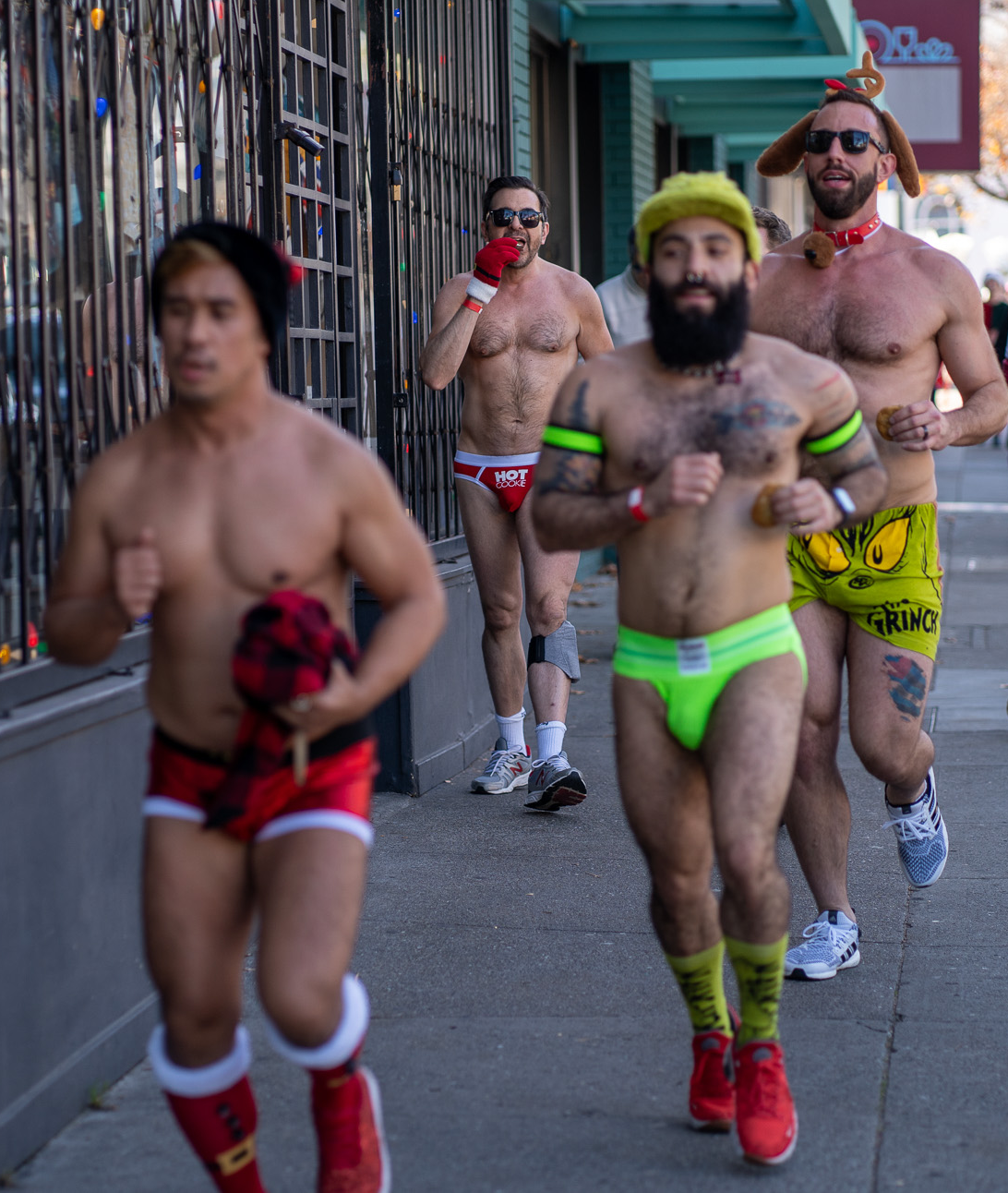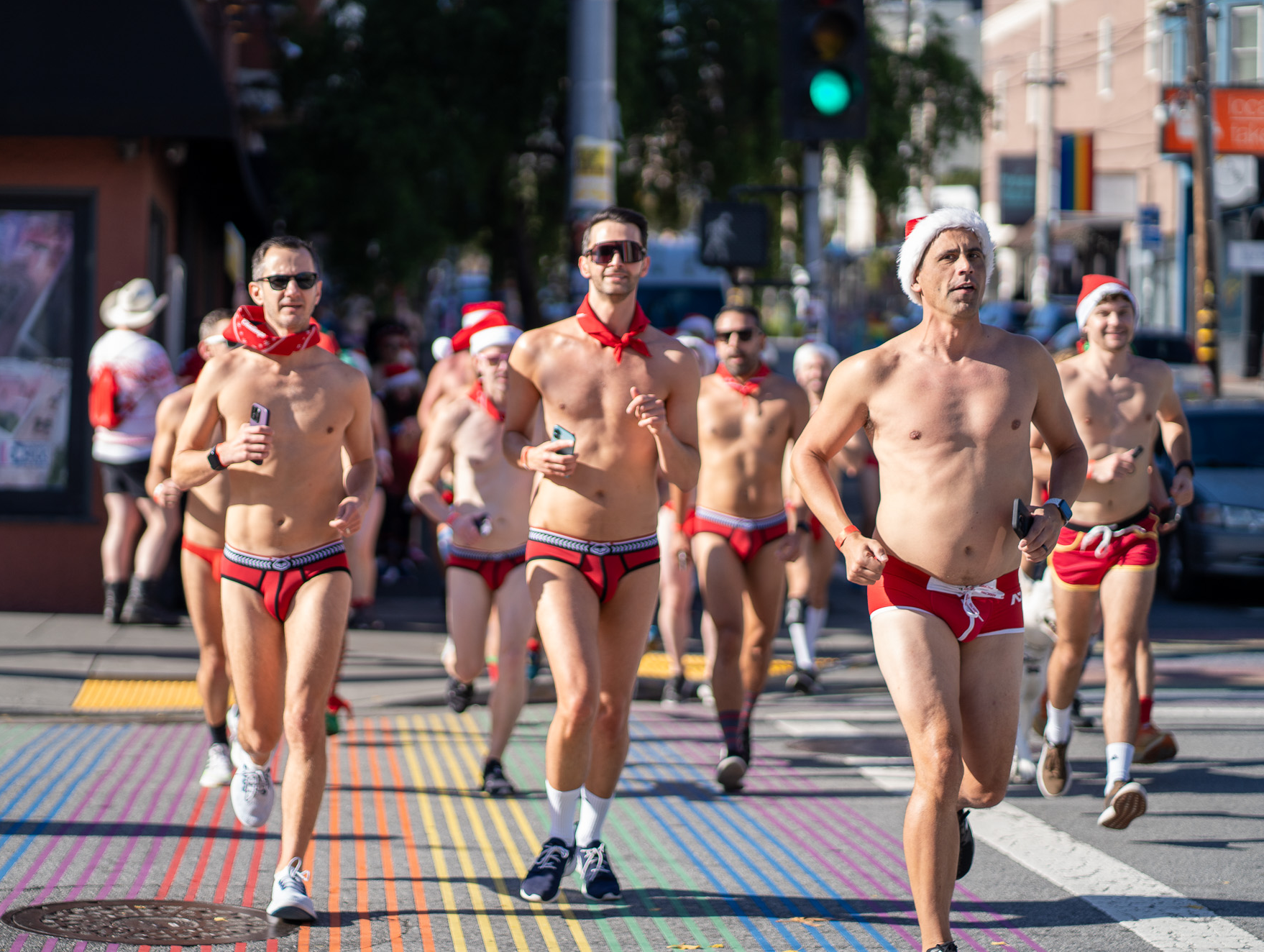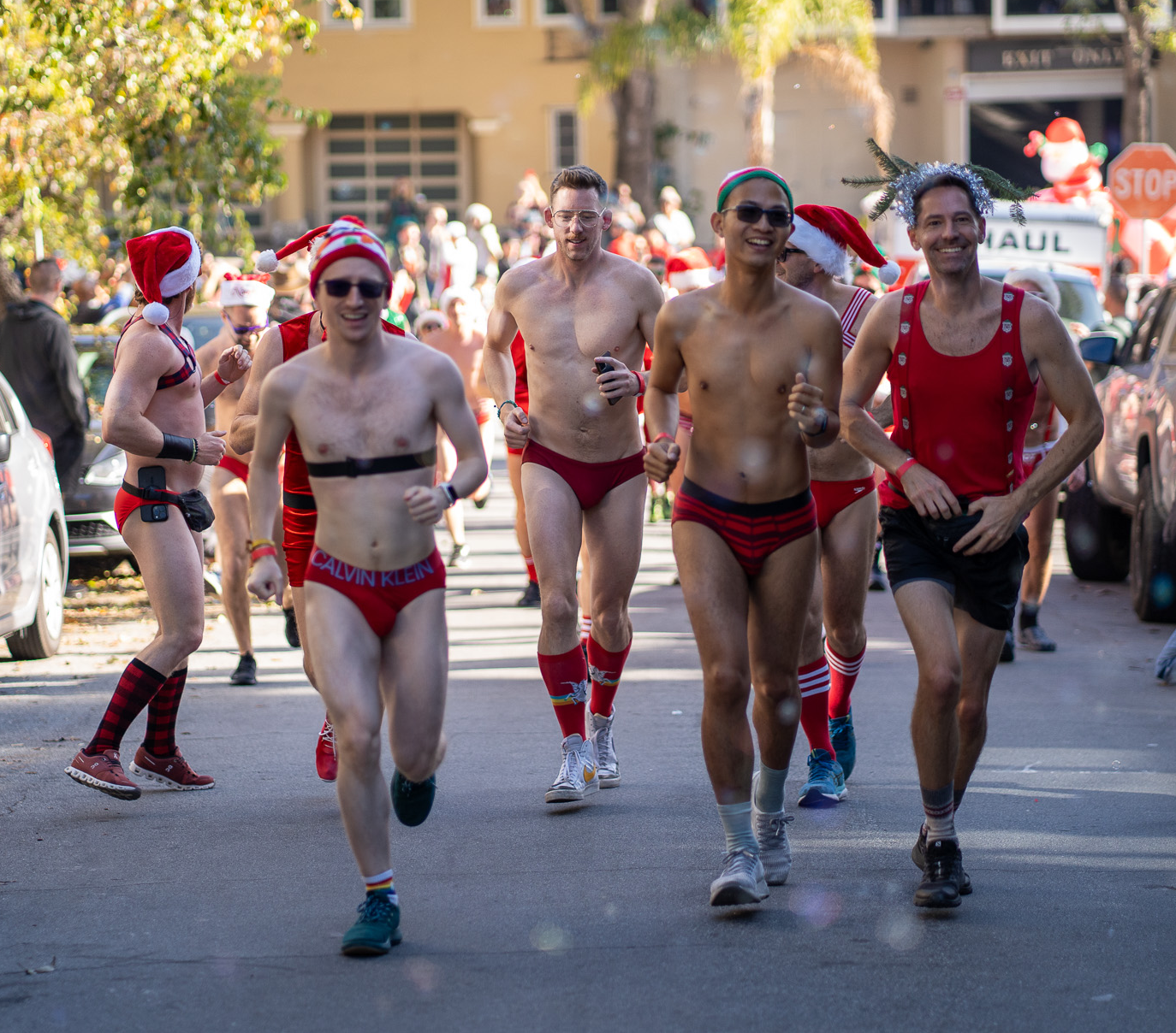 Santa Skivvies Run is a sequin-soaked morning where participants don little more than holiday-themed underwear and then gaggle the streets of Castro. It’s sort of like SantaCon meets a polar bear swim, but with a gay twist and a lot more fun: You’re freezing your tits off, but it’s for a good cause and everyone’s really friendly.