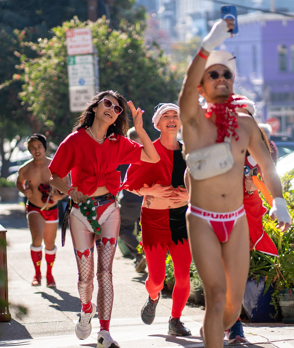 By the end of the day, my phone was filled with photos I’d never post to my family group chat, my legs were sore from chasing half-dressed runners, and my coat was mysteriously covered in glitter. But as I sipped a drink at Lookout and watched the crowd laugh and celebrate, I realized: Christmas may pass and holiday-themed cocktails will no longer get poured, but jiggling butts on Castro streets? Those are forever.