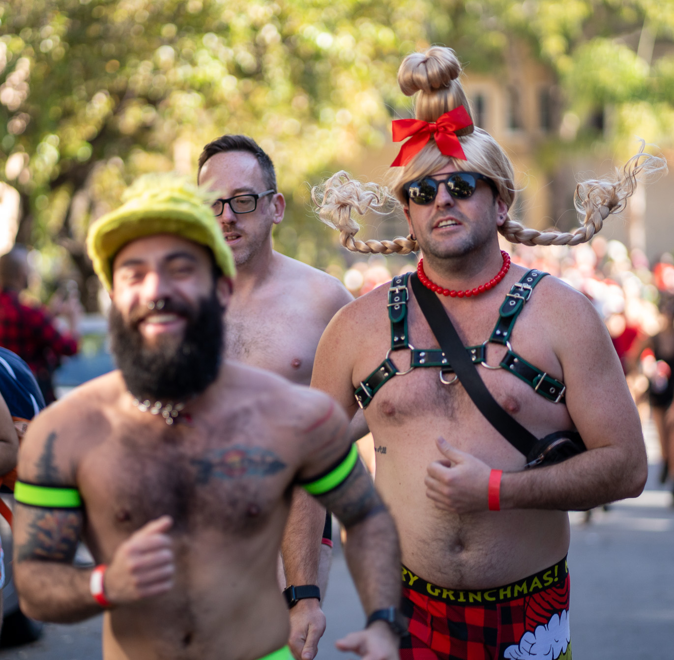 It all started with a text from my editor: “Want to watch half-naked men don Santa hats and harnesses while they prance through the Castro?”