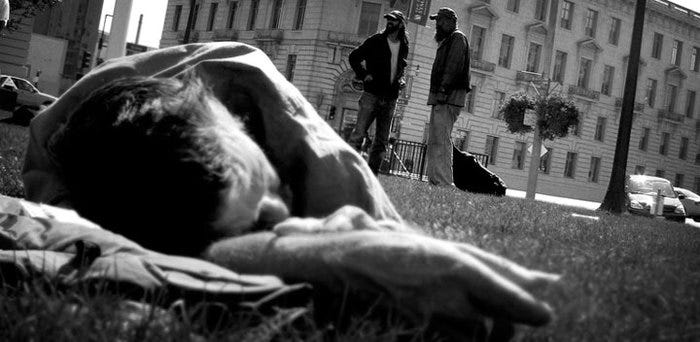 Here’s what happens when you observe the behavior of people near the Civic Center: everyone becomes a suspect. The guys with weird limps. The guys who smell like piss. The guys with cRaZy hair. The guys smoking way too many cigarettes for a Monday. The guys with their pants half off. The guys who just exude sketchiness. The guy who looks like ZZ Top. The guys pushing shopping carts. The guy tattooing his left arm. The guy wearing socks but no shoes. The guys with obscenely large backpacks/duffels/garbage bags. The guys dressed like and talking like old war buddies, who make you wonder: could they ever have been fit for duty? What about the balding guy in a brown canvas jacket and black Converse hi-tops, gesticulating wildly to himself / nobody / everybody, pacing back and forth, eying the bike rack, and then wandering off.