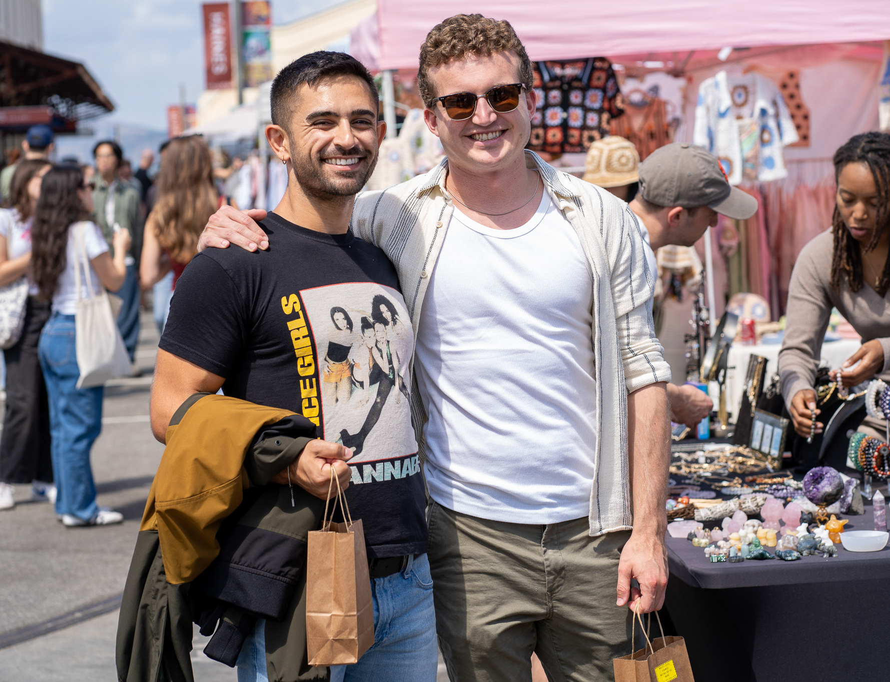 From 10 a.m. to 3 p.m., the outdoor market was a scene: rows of cute vintage clothing stands, handcrafted ceramics, and more statement jewelry than you’d know what to do with. It was all sunshine, good vibes, and people pretending they hadn’t just bought something at the last booth they visited. And when the inevitable shopping fatigue (or warmth) set in, Radhaus was there to save the day with pints of beer — the perfect pit stop for those needing to sit down and cool off before diving back in.
