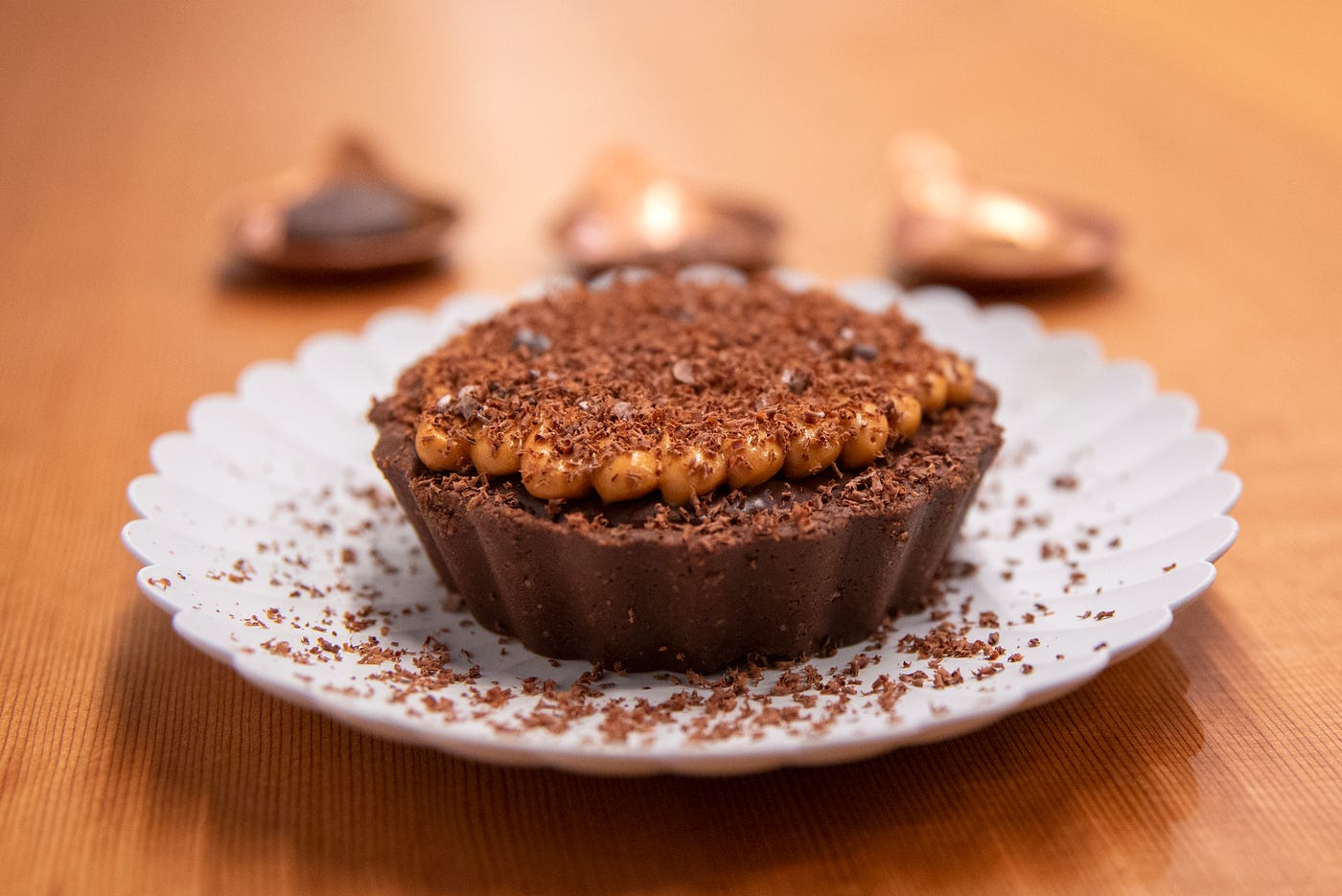 Read the full recipe for Koh’s chocolate coffee caramel tart.