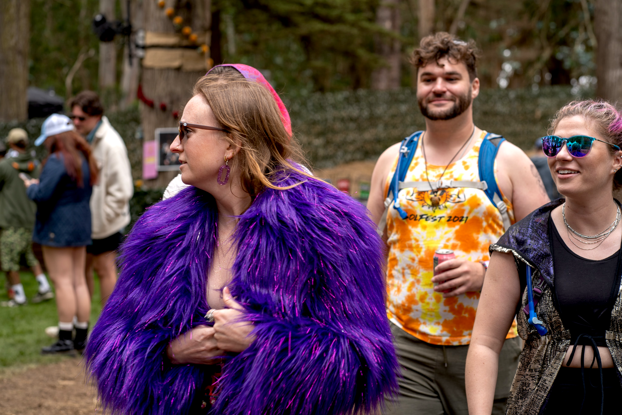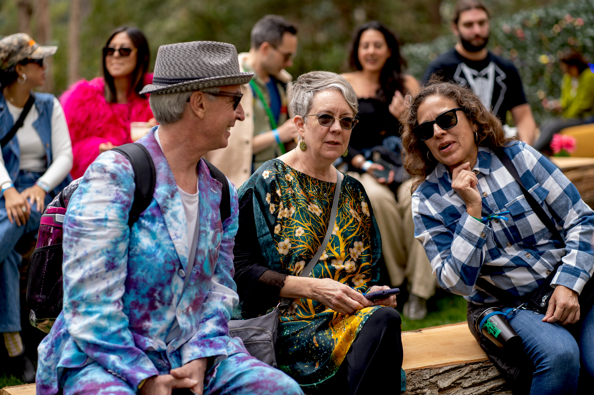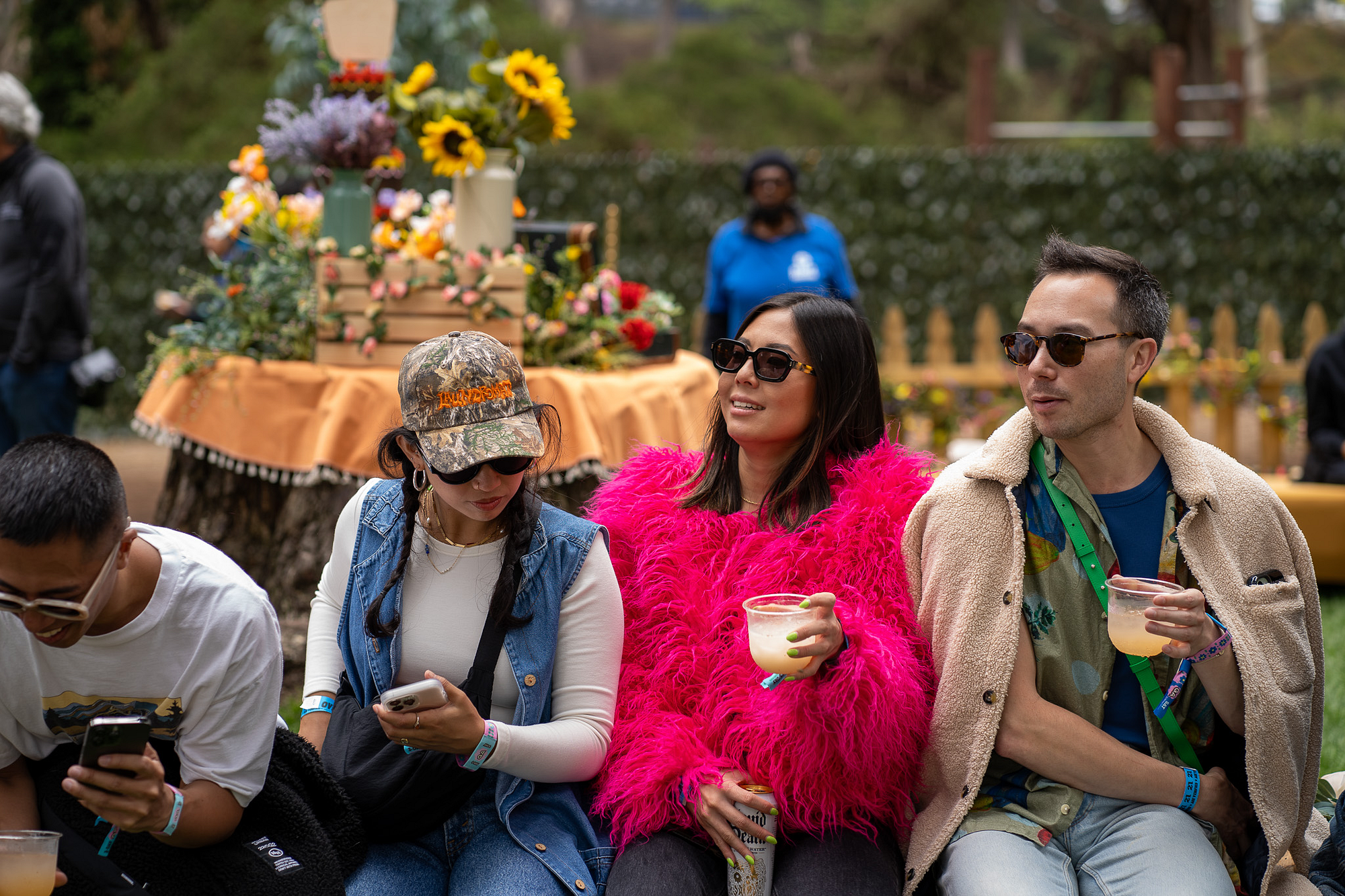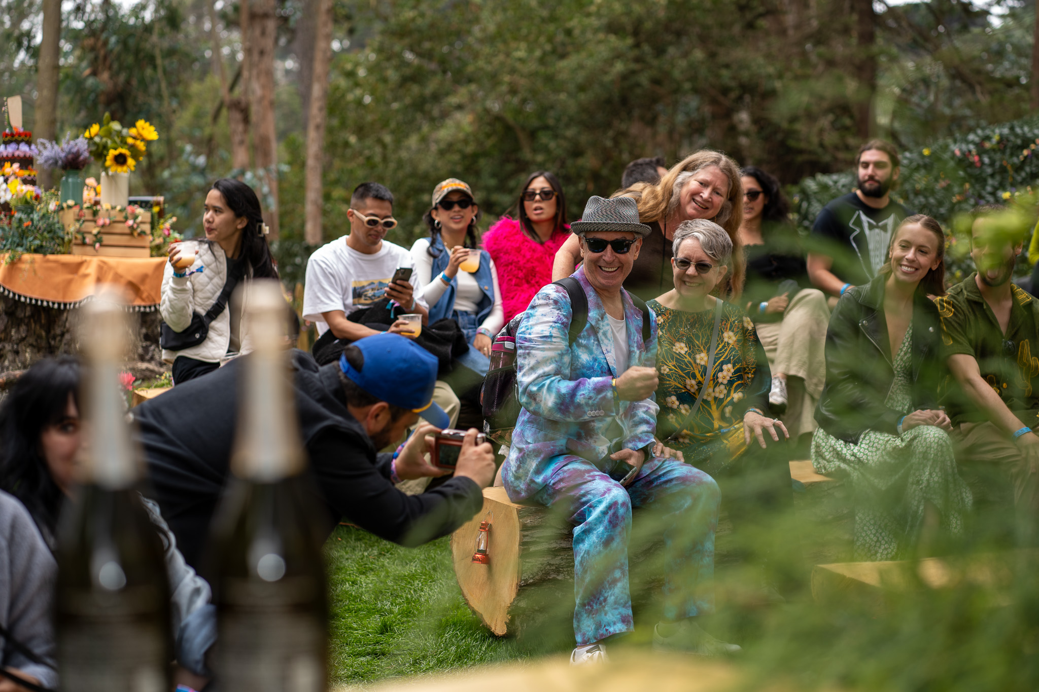 “Yeah, you are — I have a muffin in my pocket. It’s from the breakfast spread at the hotel,” said bridesmaid Janine Kirtland from Colorado, dressed immaculately in a green pantsuit and sunglasses. She shared stories of the low-key preparations, including a “Jamber” playlist she made for guests to familiarize themselves with the artists performing at Outside Lands.