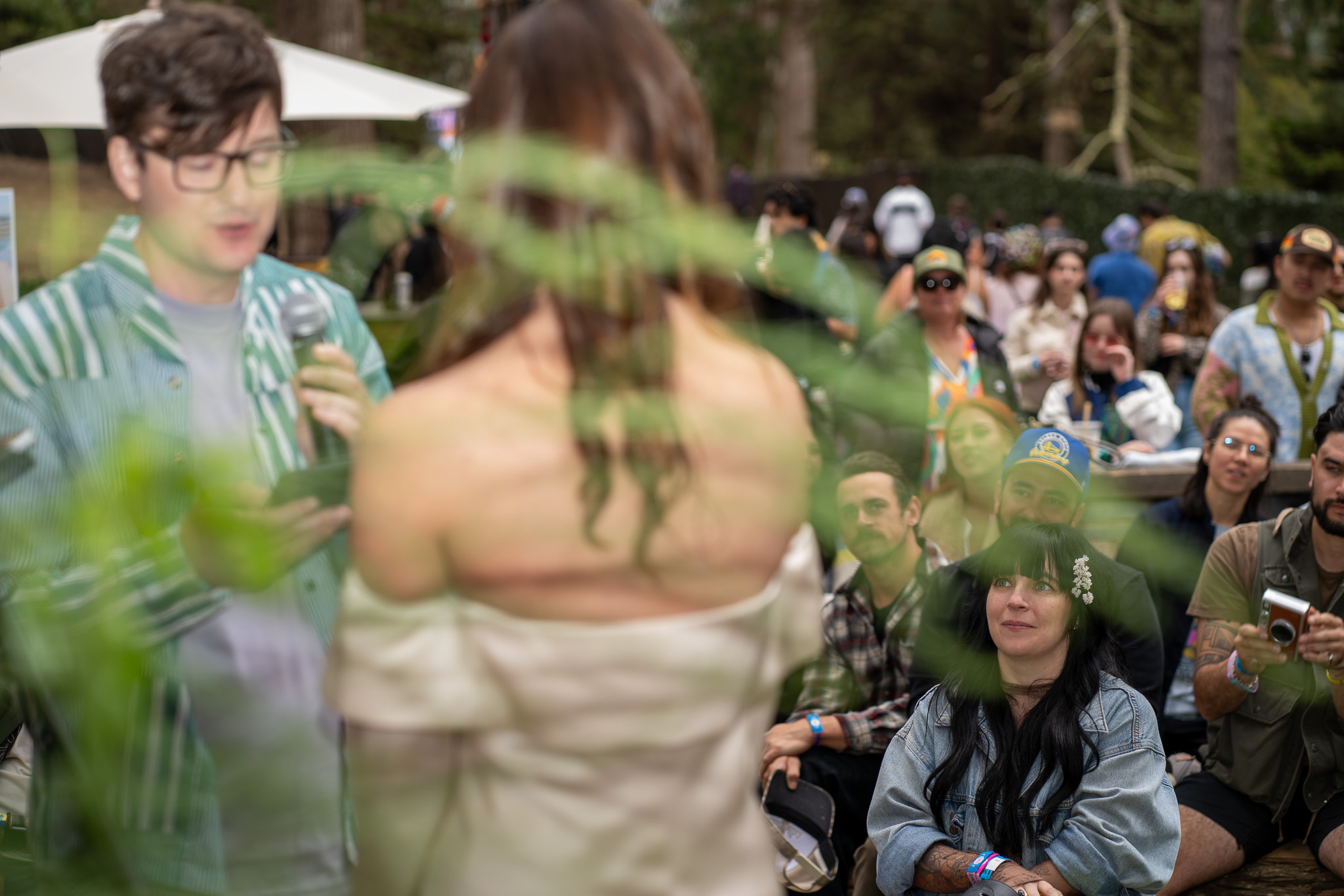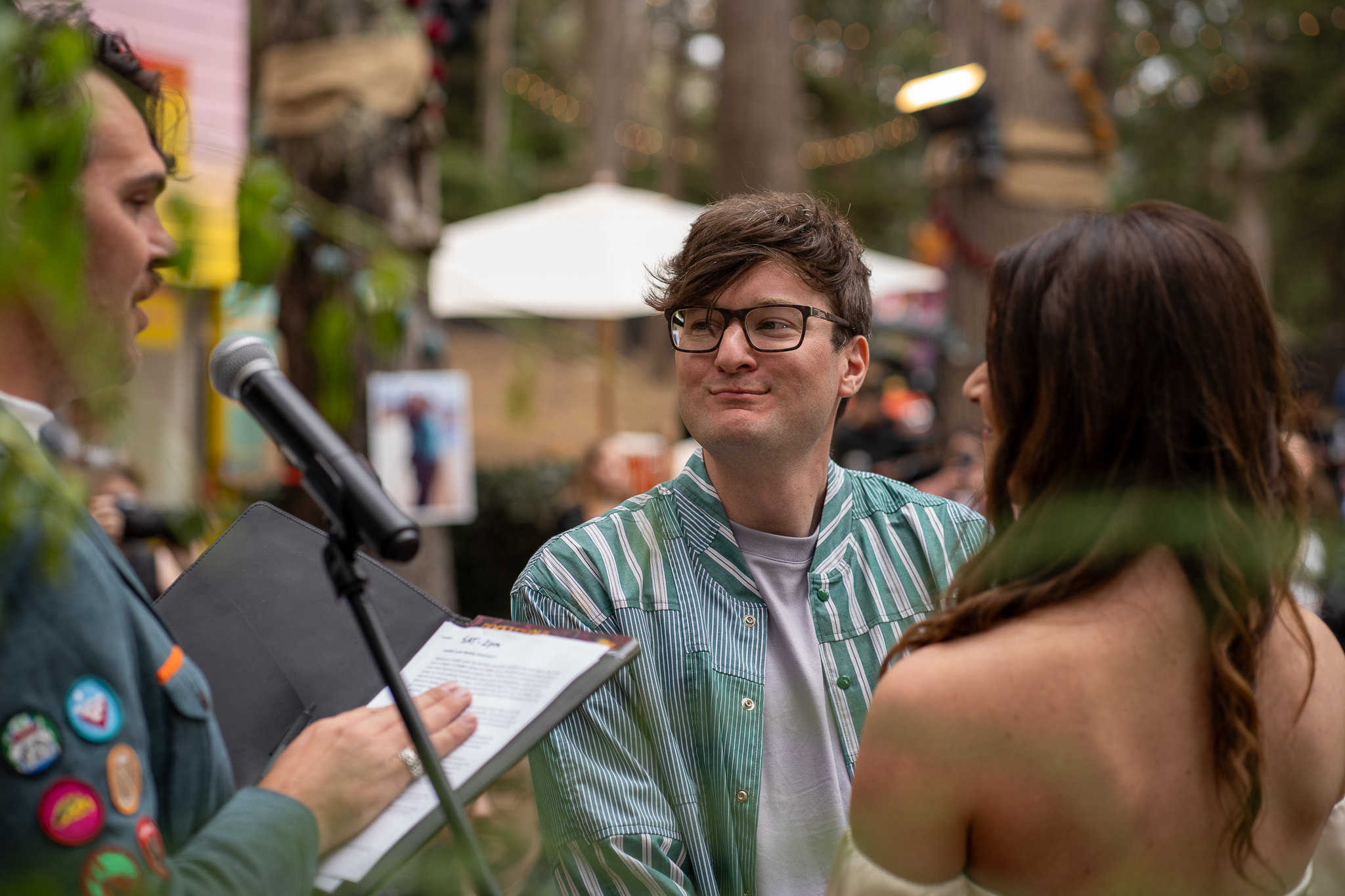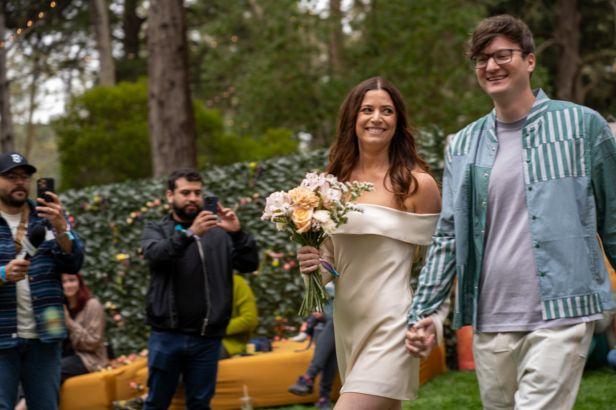 After the ceremony, the newlyweds shared loving embraces with their guests, snapped some shots in front of the Outside Lands wedding-themed decoration table, and FaceTimed with Josh’s parents. With no plans other than to “do Outside Lands” for the rest of the day, Amber and Josh joined the festival crowd, ready to dance, celebrate, and make the most of their unique wedding day.