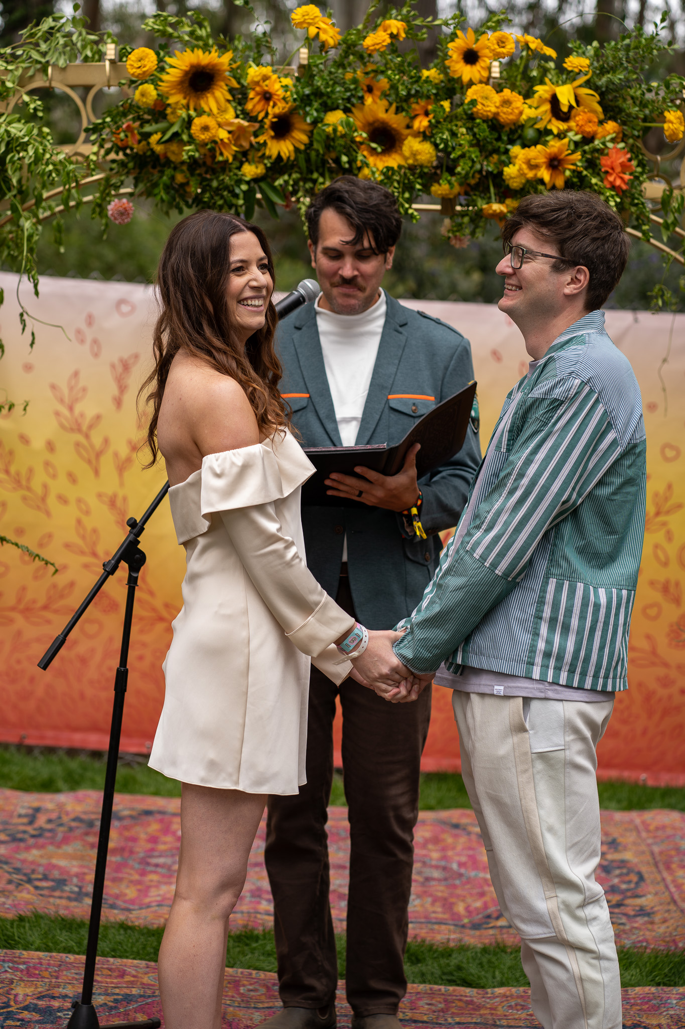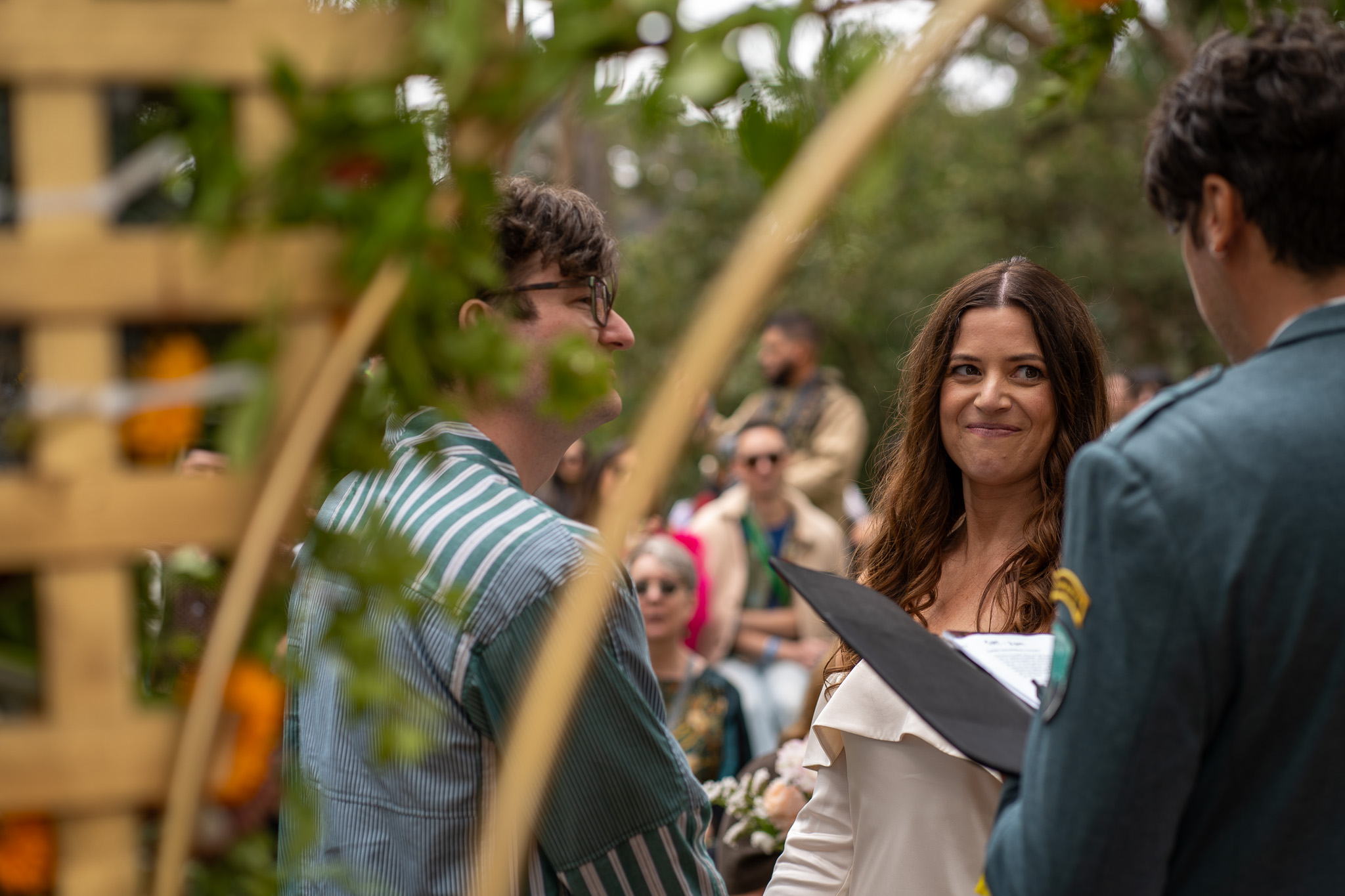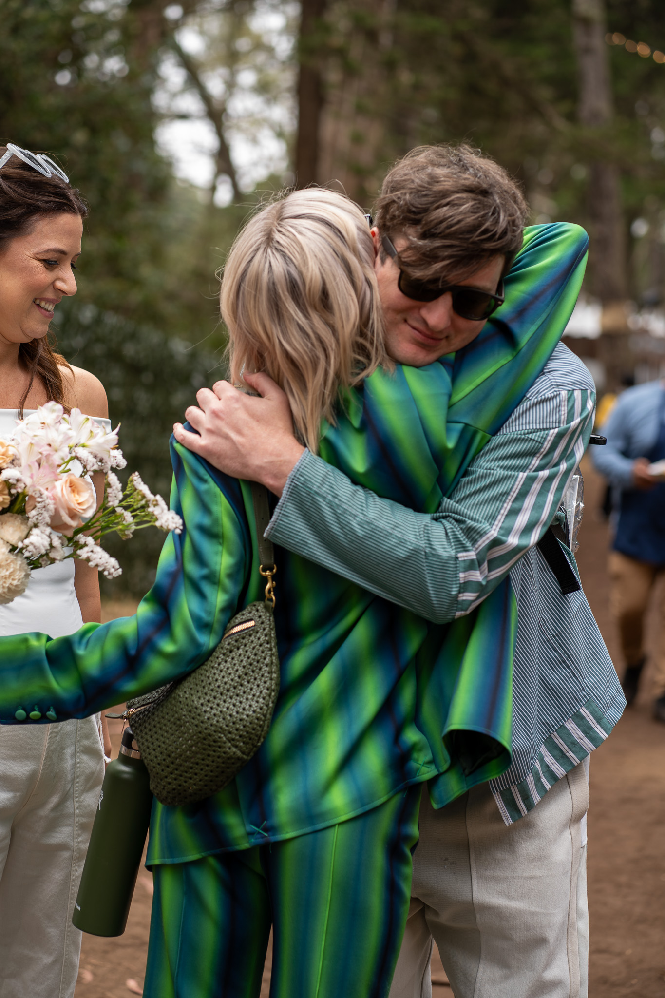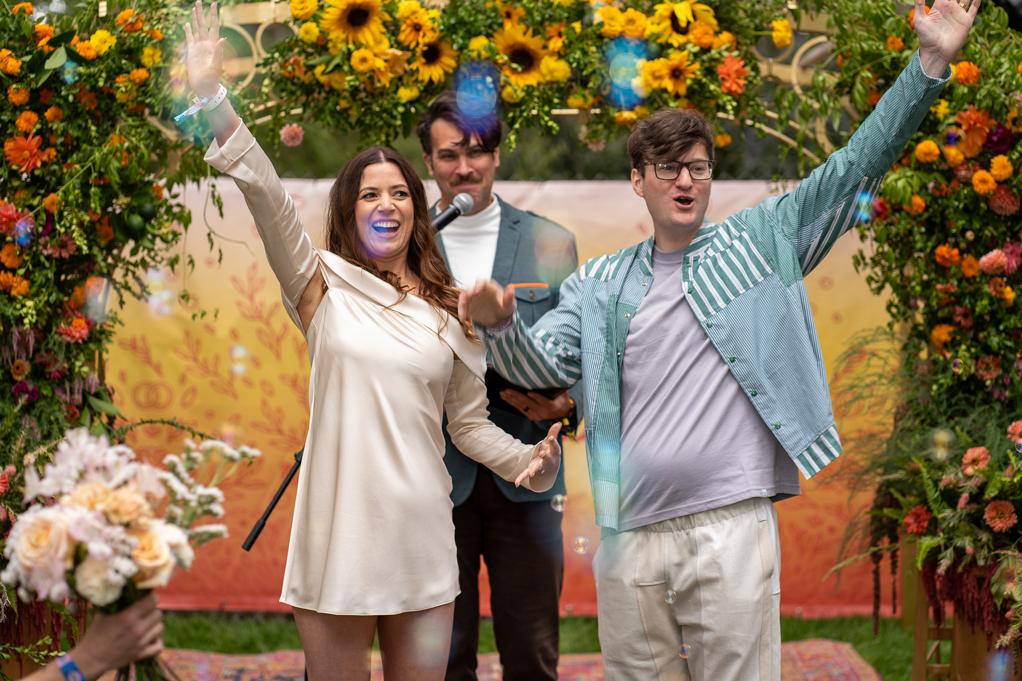 After the ceremony, the newlyweds shared loving embraces with their guests, snapped some shots in front of the Outside Lands wedding-themed decoration table, and FaceTimed with Josh’s parents. With no plans other than to “do Outside Lands” for the rest of the day, Amber and Josh joined the festival crowd, ready to dance, celebrate, and make the most of their unique wedding day.