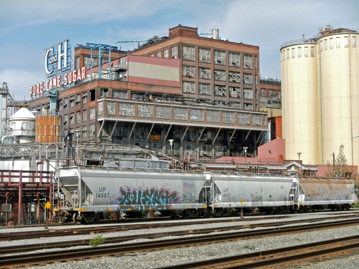 As the sun begins to set, we ride past the industrial behemoth that is the C&H Sugar factory, up and down hilly residential streets, and pass the seemingly abandoned storefronts of brick buildings. I forget that I’m in California for a moment — a feeling that’s both bewildering and exciting.