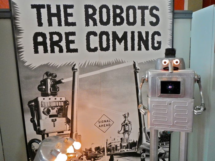 On a community message board outside the post office, we find a flyer for the Bailey Art Museum that proclaims, “The robots are coming,” and decide that a visit to the nearby town of Crockett is in order.