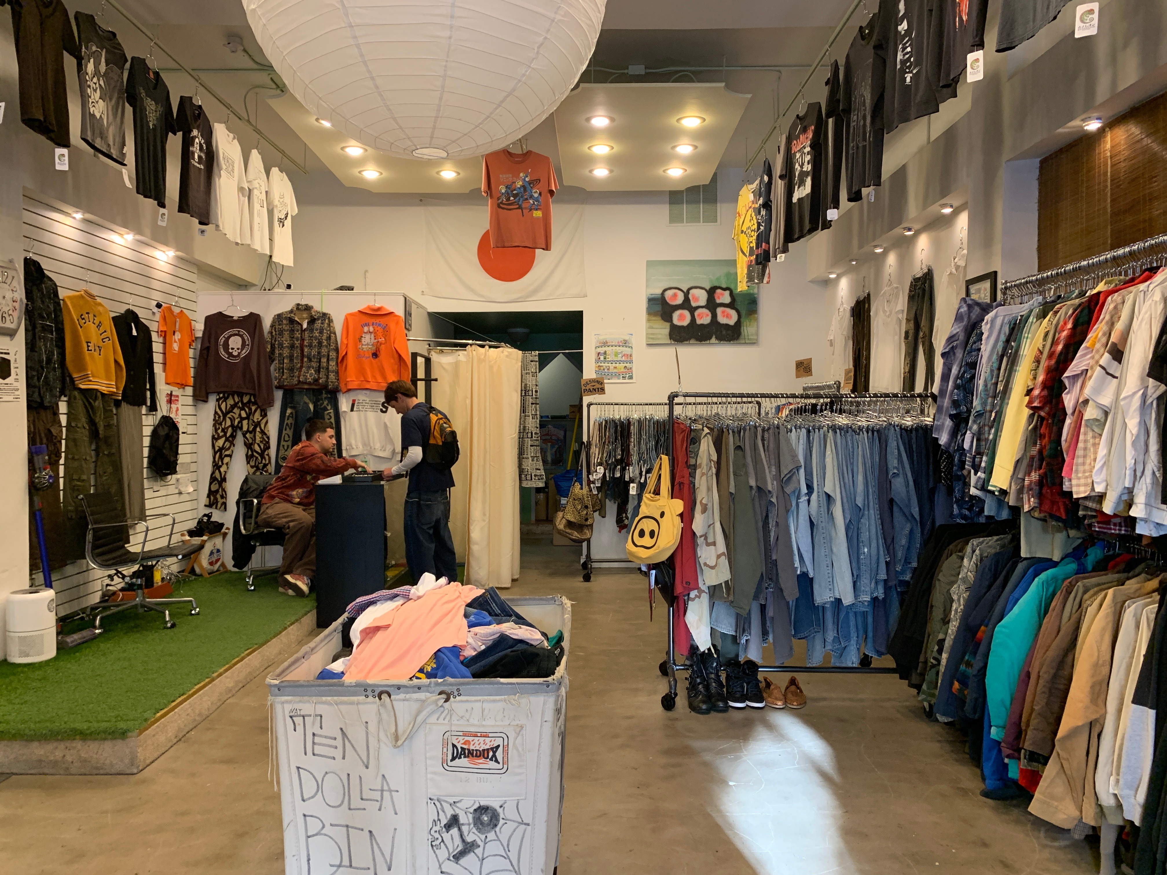While I’m thrilled and fascinated by the styles, techniques, and fabrics found in “true” vintage stores, I also appreciate the newer crop of stores specializing in more recent trends and designers. Chameleon, a store carrying Japanese and European vintage, recently earned praise from GQ as one of the best shops nationwide for vintage menswear. Manager Oleg Nikitenko says the store often attracts those who appreciate and want to learn more about its Japanese brands.