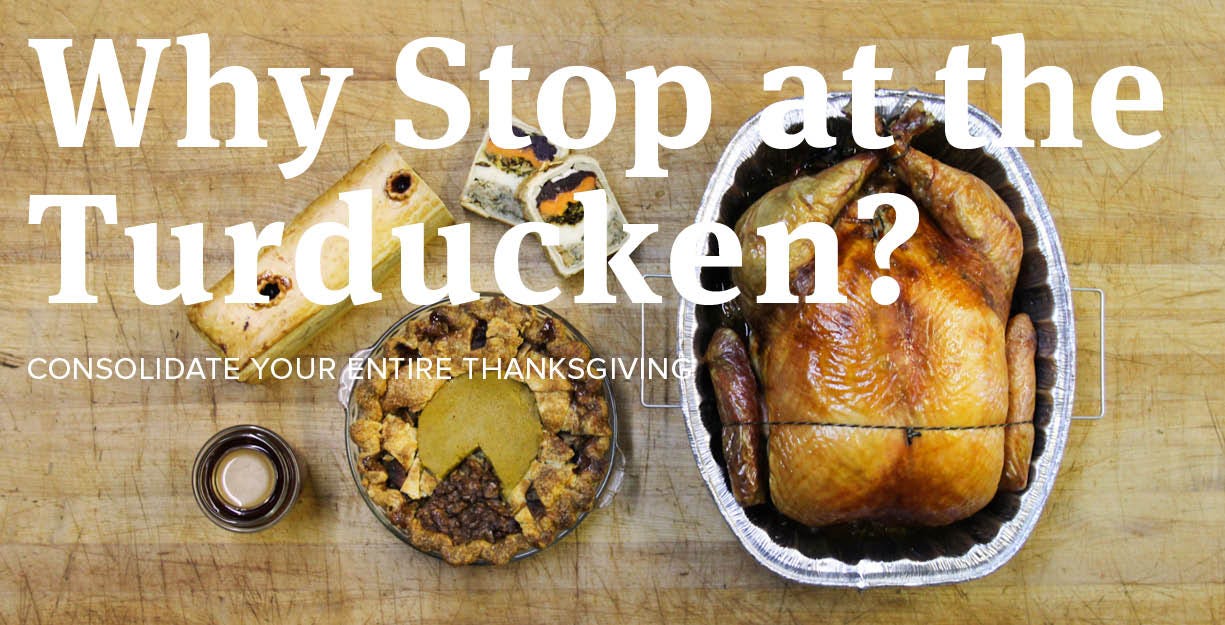 Every year, people go nuts with the mere concept of turduckens, and yet foolishly continue to isolate every other aspect of the meal. This year, why not take things to the next level by consolidating every part of the Thanksgiving feast!