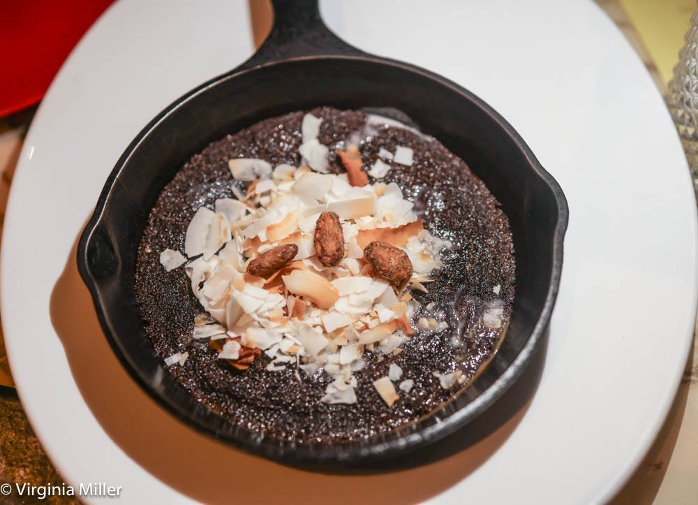 We tried two dessserts. Their version of ubiquitous churros are fuhgeddaboudit-good, dusted in cinnamon-sugar, dipped in chocolate, almost dissolving in the mouth with subtle exterior crisp and warm, soft dough inside. A fall dessert special was an earthy chocolate pumpkin crema Catalana, a Catalan-style custard under burnt sugar, not unlike cremé bruleé. Over Halloween, an accompanying “Tub ‘O Treats” held seasonal popcorn and candies like candy corn, a colorful, “feel like a kid again” dessert platter.