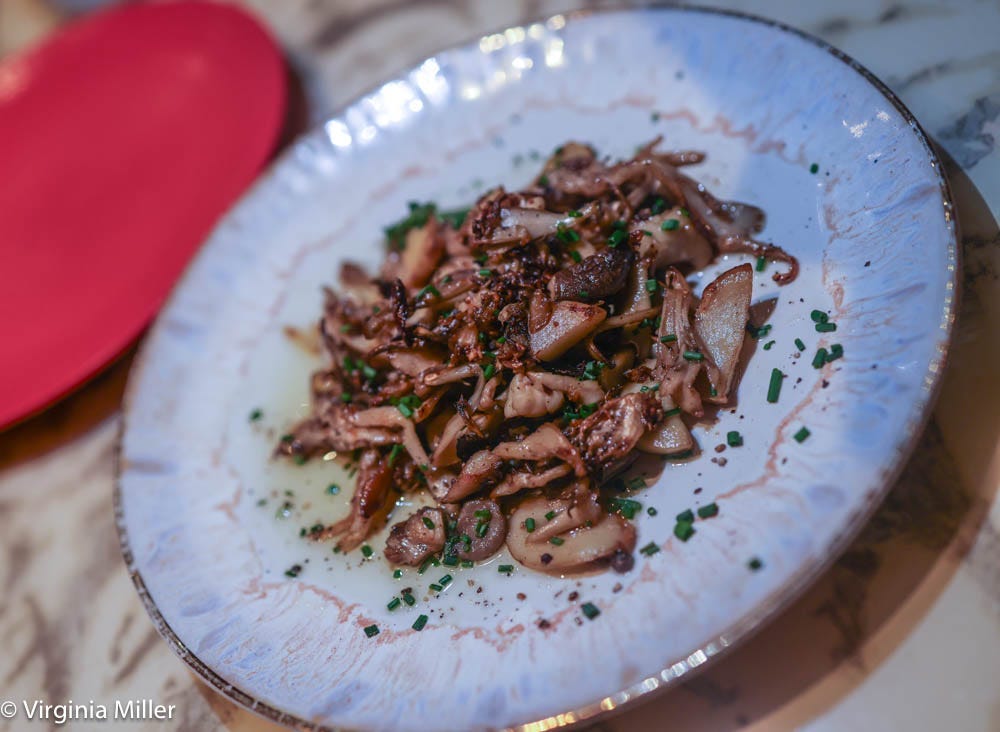 From left to right: Canela setas (oyster mushrooms) and steampunk chicken wings. Photos by Virginia Miller.