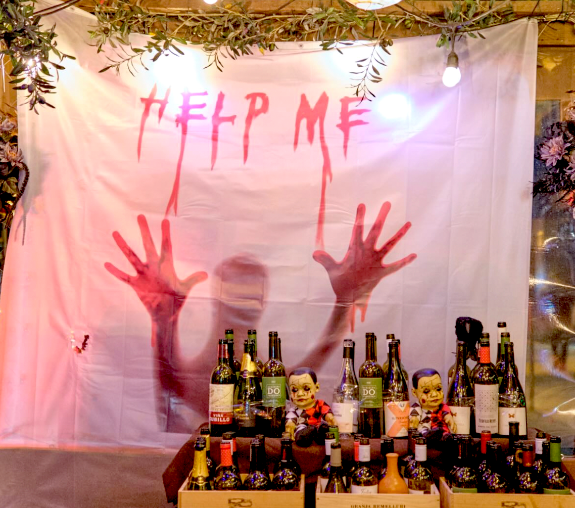 Halloween-themed wine bottle ring toss at Canela. Photo via their Instagram.