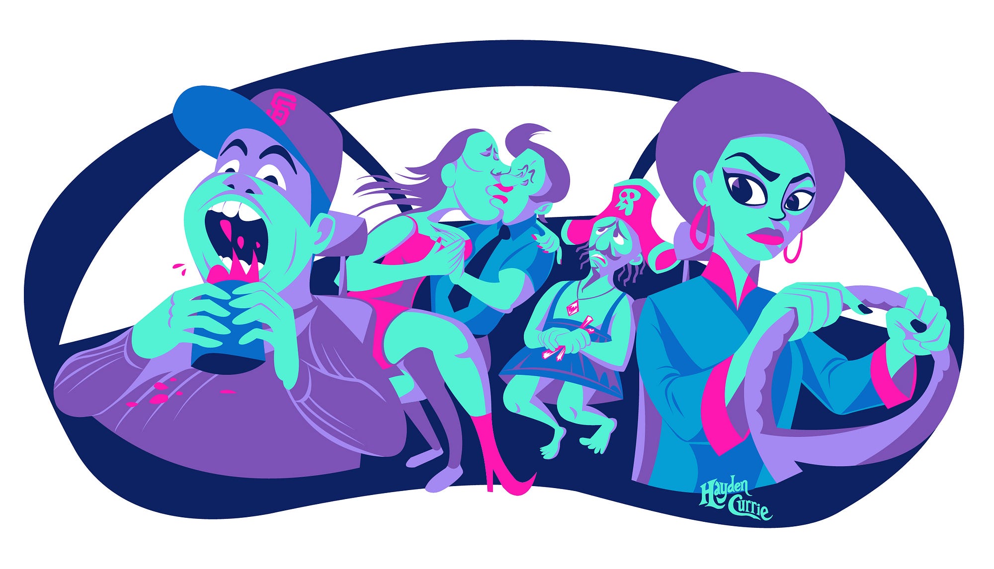 He lost his friends somewhere in a dive bar in Haight Ashbury. He has sriracha in his beard. He offers you a shot of some unidentifiable cocktail in his warm water bottle. He sticks his head out the window like a dog to clear his head. Okay, he’s vomiting out the window.