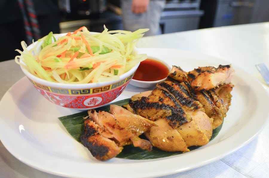 Sticky Rice pays homage to Southeast Asian cuisine. The original stall has all things Thai, including khao mun gai (their rendition of Hainanese chicken rice) and a BBQ chicken with crispy skin, chili, and a touch of sweetness. Sticky Rice 2, just a couple of steps away, takes it up a notch with more Thai food but with a heavier focus on noodles.
