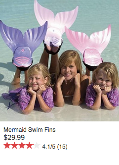 They come in one color: Pink (duh). Wonder if they have these in an adult male size? “Mer-man! [cough, cough] Mer-MAN!”