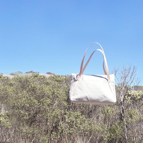 This is a perfect weekender or picnic tote. It even has a hidden pocket at the base to hold a blanket or extra luggage. Constructed out of heavyweight canvas, leather, and brass hardware, the Daytripper is sturdy, functional, and beautiful to boot!