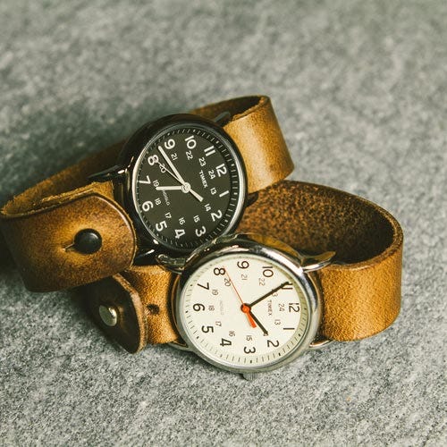 This watch pairs the elegant simplicity of Timex with legendary Horween leather straps. It was named one of Esquire’s Best Accessories for Men in 2012. This is the perfect everyday watch.