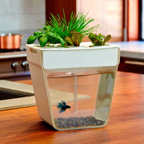 Anyone can be a mini urban farmer with this aquaponic farm, aka self-cleaning fish tank that also grows herbs and lettuces you can eat. Buy it online or at Whole Foods Market.