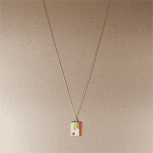 Keep California close to your heart with this state flag pendant. Cloisonne pendant gilded in 22 karat gold. 30" 18 karat gold-dipped chain.