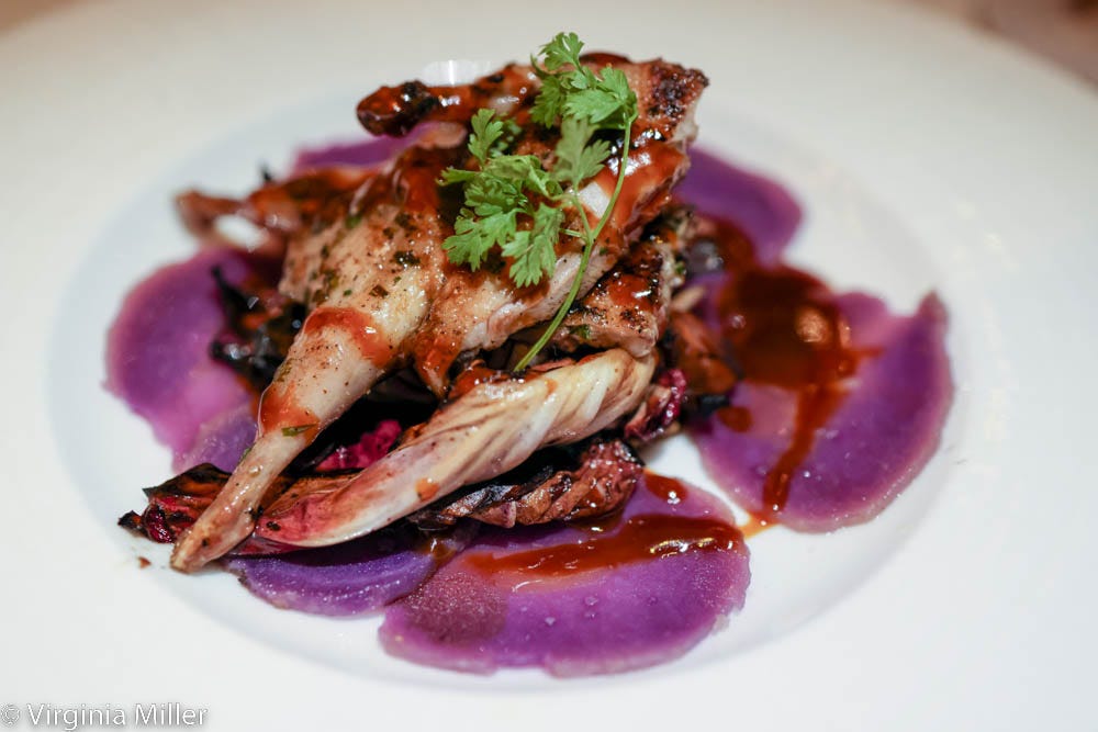 I recall chefs George Morrone and Joseph Humphrey’s (1997–1999) influence on many restaurants back in the early aughts, including Morrone’s memorable upscale seafood destination, Tartare, and Humphrey’s days at The Restaurant at Meadowood and Auberge du Soleil in Napa. Their grilled Sonoma quail from One Market in the late 90s still feels current, thanks to a Meyer lemon-truffle sabayon bringing a tart, umami acid play, charred radicchio a welcome bitter, over slivers of warm purple potato “salad” imparting a violet hue. Overall it’s one of the better quail dishes I’ve had in years… despite being a historic recipe.