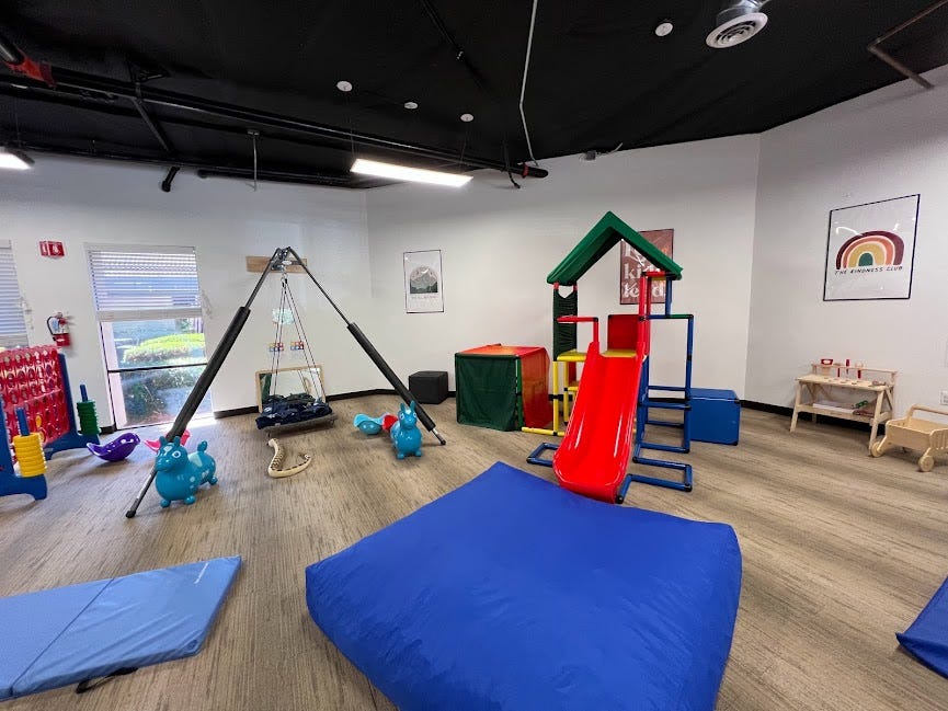 Two unique options are the Swings and Wings play space on the Alameda, and Spirited Play Lab in San Ramon. Both do double duty as play spaces and locations for occupational therapy sessions.