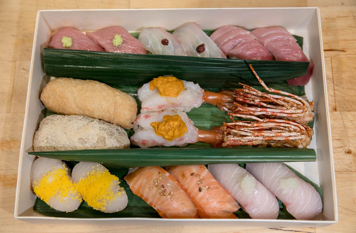 Kusakabe is one, from Kyoto-born chef Mitsunori Kusakabe. Kusakabe’s takeout/delivery kaiseki-style offerings (there are also à la carte rolls and dishes) includes a $90 “petite omakase” for two, as well as a splurge-worthy $260 omakase for two packed with luxury.